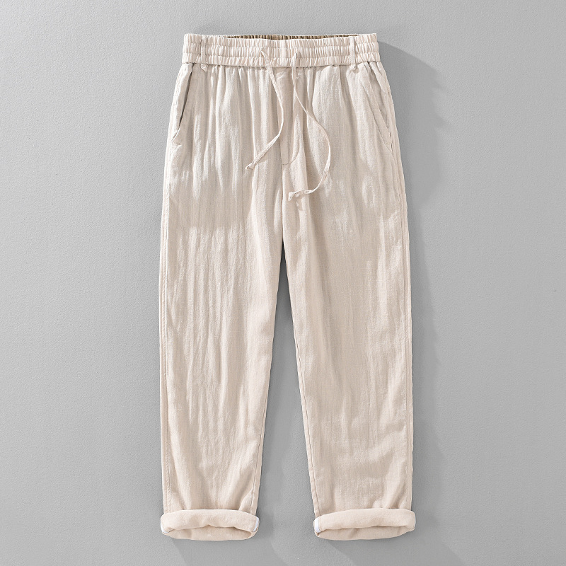 High-quality mens business casual pants made from a ramie-tencel blend, perfect for autumn and spring, offering comfort, breathability, and a polished professional look.