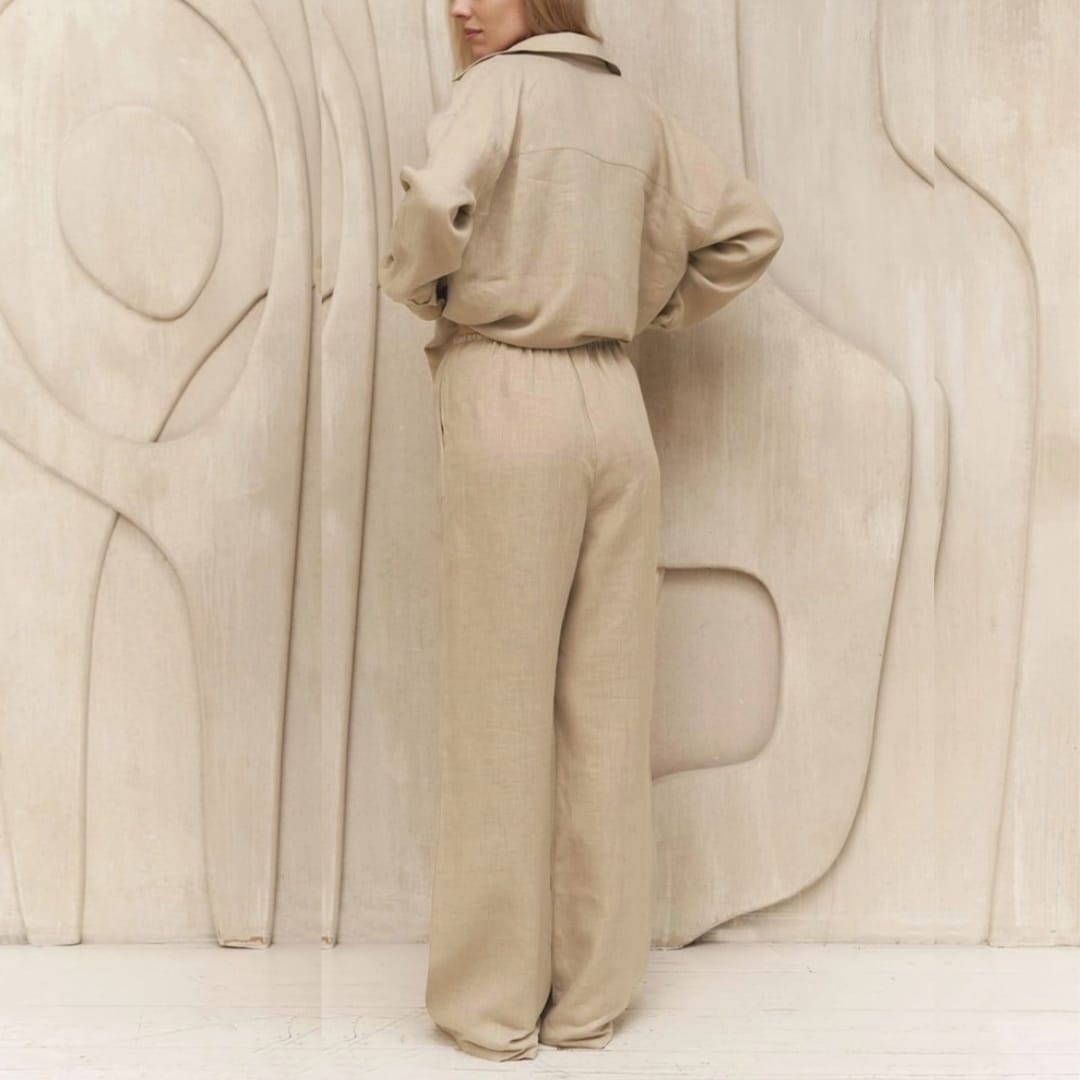 Stay effortlessly chic with this Womens Relaxed Wide Leg Pants and Blouse Set, featuring a comfortable fit, versatile style, and modern, coordinated design.