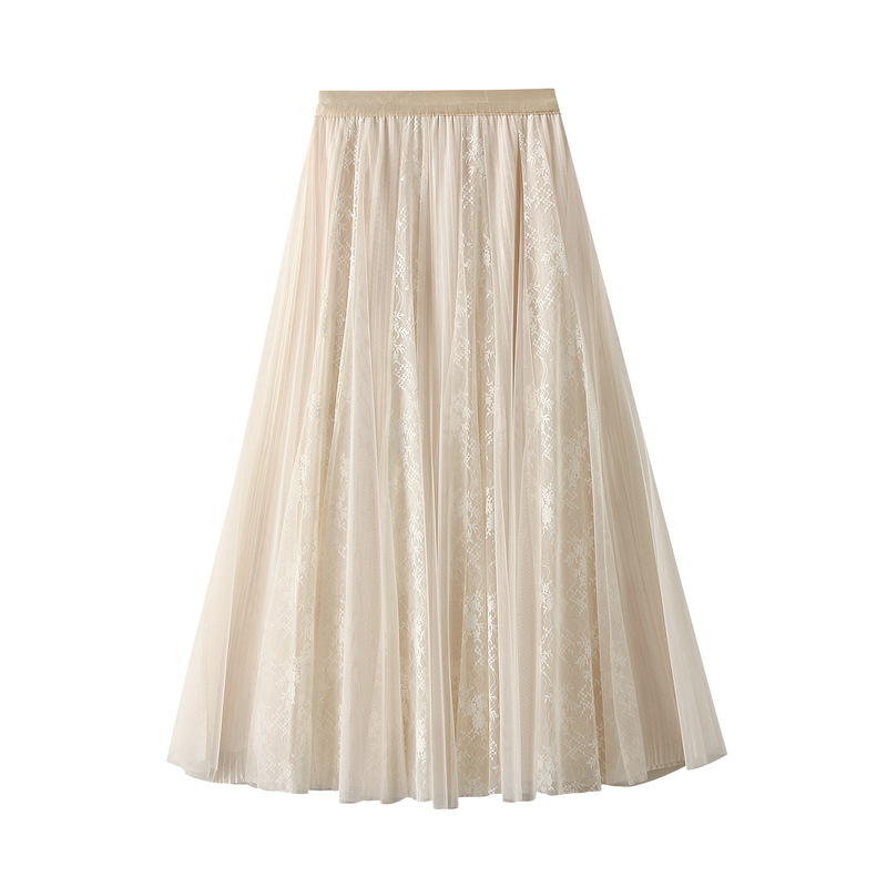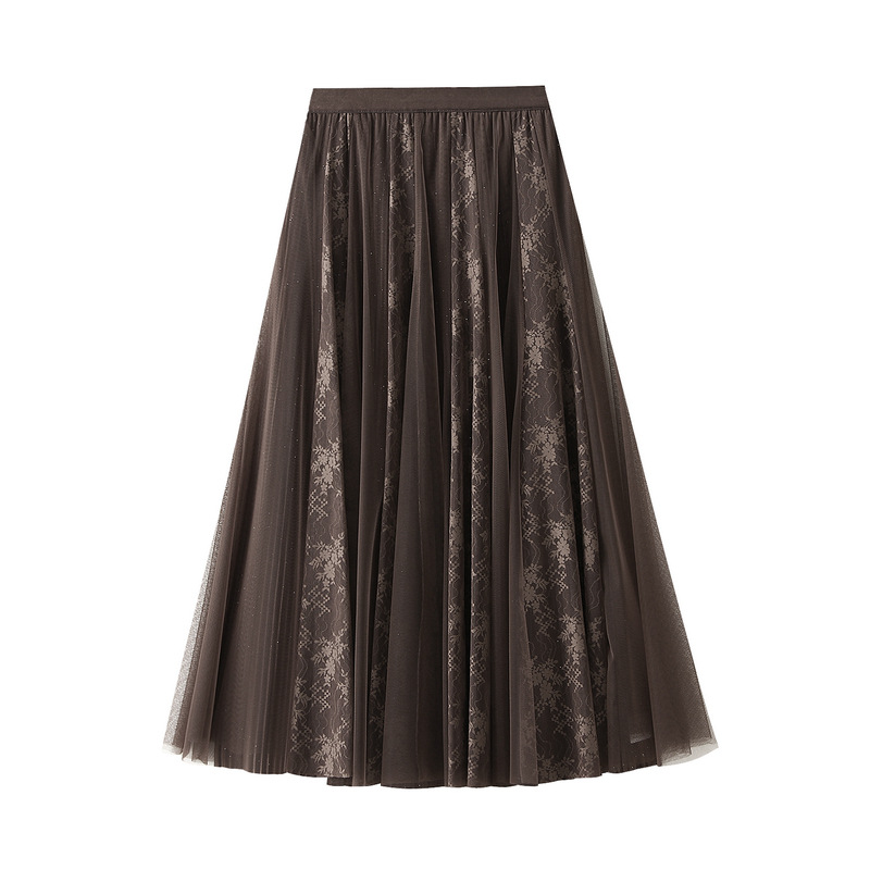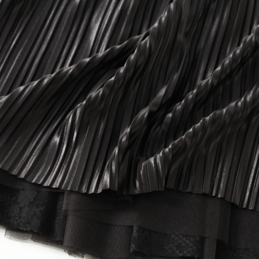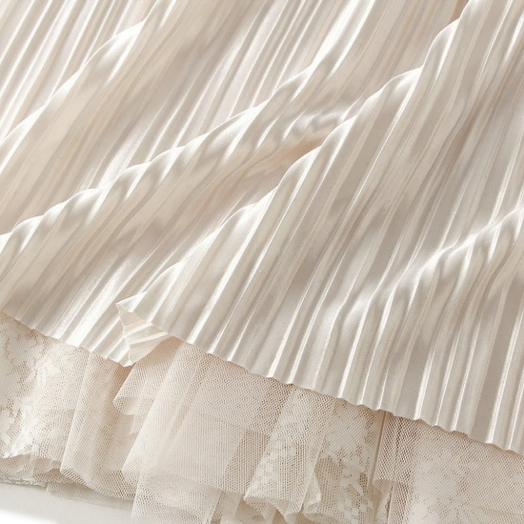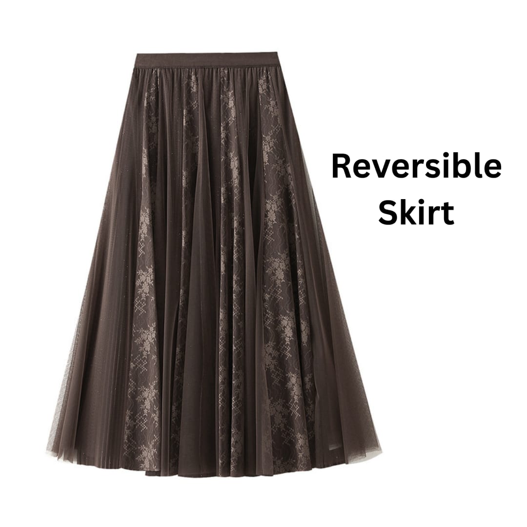 Elevate your seasonal style with our Womens Fall Winter Reversible Pleated Satin and Mesh Lace Mid-Length Skirt versatile, elegant, and perfect for day-to-night looks.