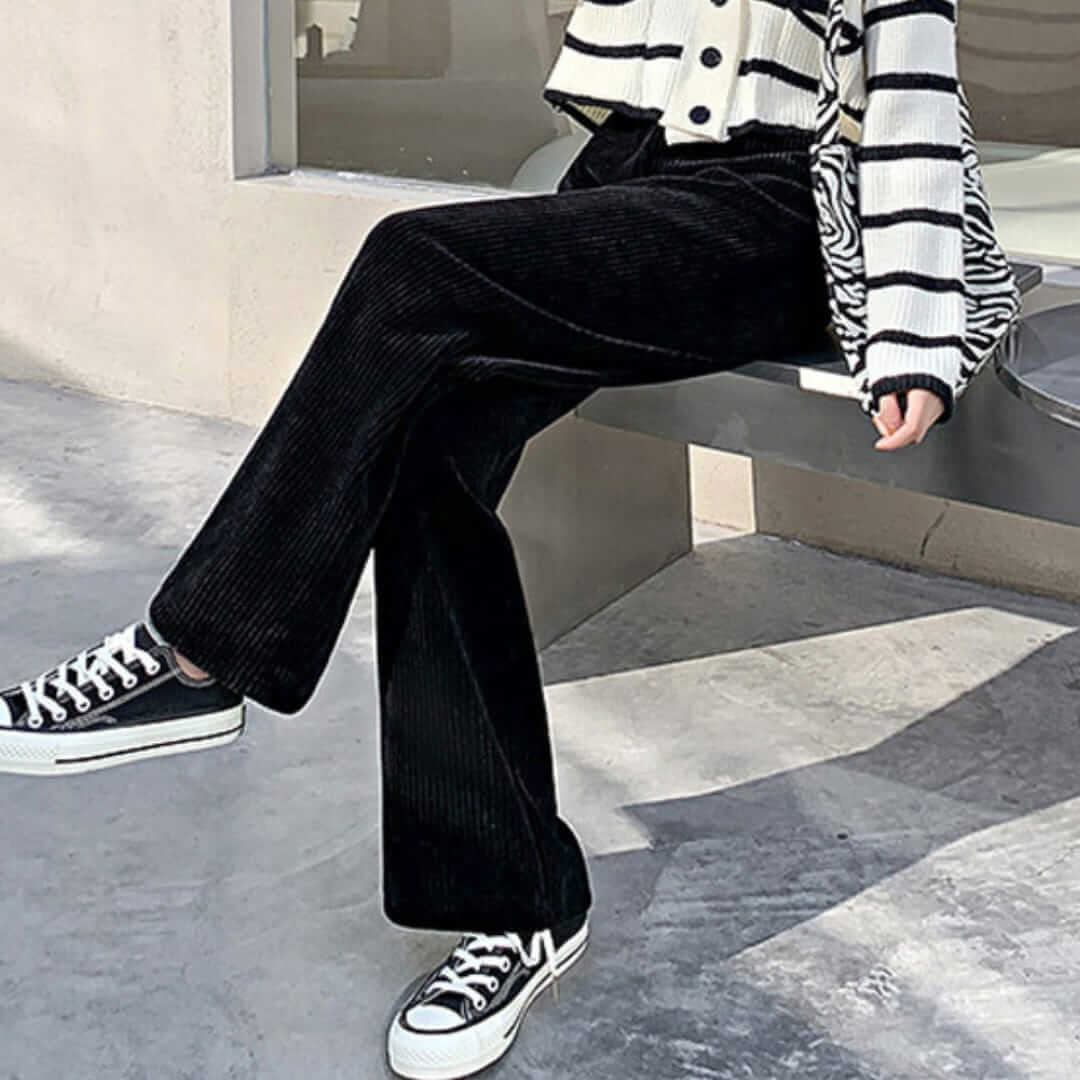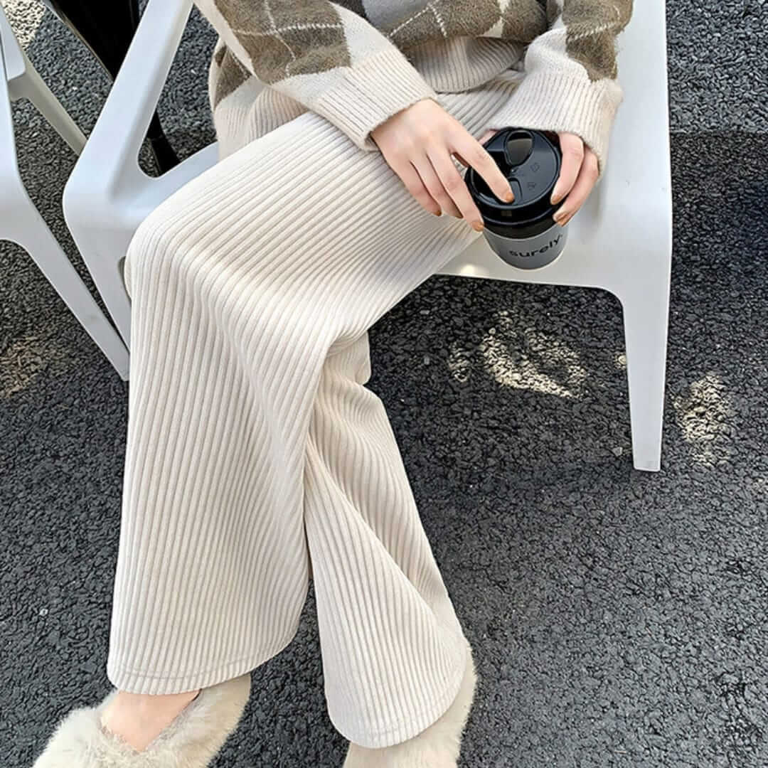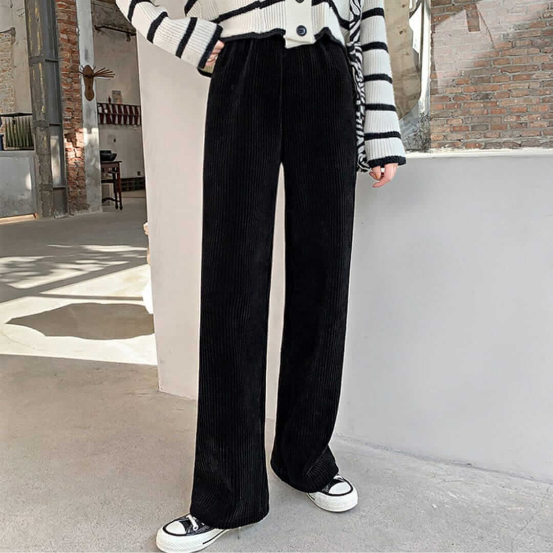Ribbed Corduroy Wide Leg Slip-On Pants