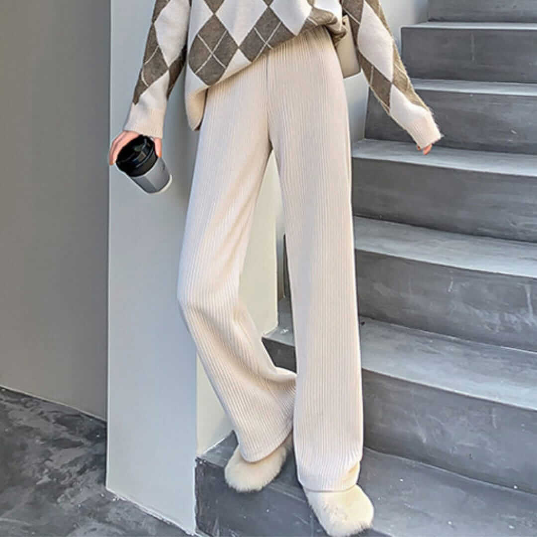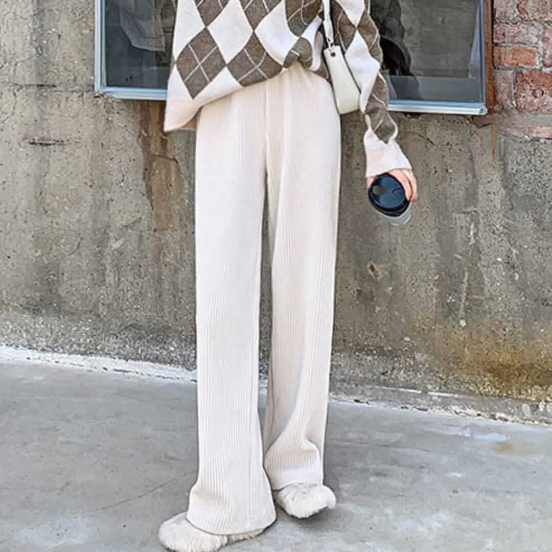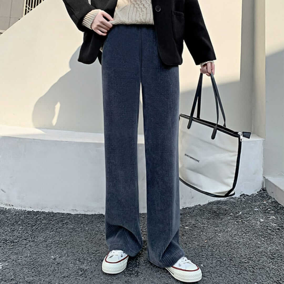 Ribbed Corduroy Wide Leg Slip-On Pants