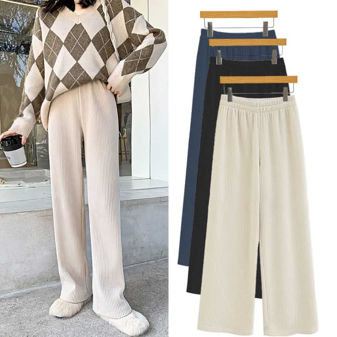Step into comfort and style with Women’s Ribbed Corduroy Wide Leg Slip-On Pants, featuring a relaxed fit and soft fabric—perfect for casual or lounge wear.