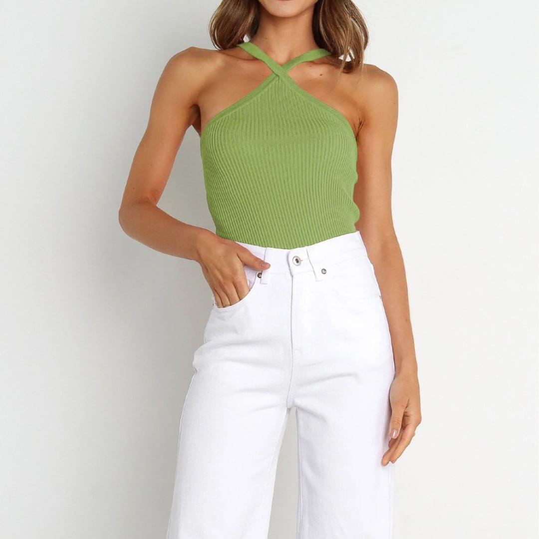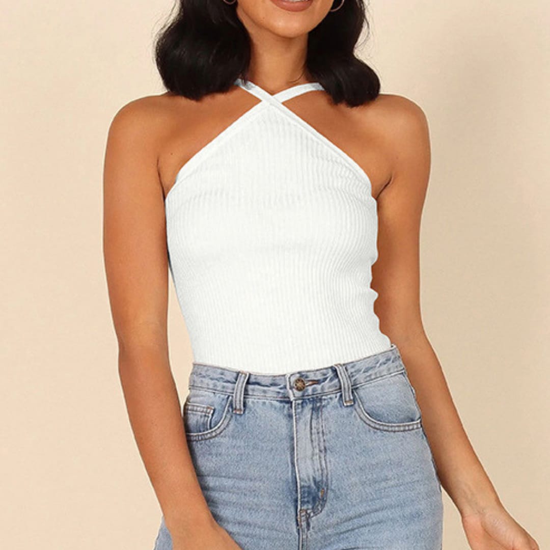 Stay cool and fashionable with this Summer Ribbed Crisscross Strap Top. Crafted from soft, stretchable ribbed fabric, it offers a comfortable fit while enhancing your silhouette. The unique crisscross strap detail adds a modern touch, making it perfect for pairing with jeans, shorts, or skirts. Ideal for casual outings, beach days, or summer festivals, this top is a versatile must-have for your warm-weather wardrobe.