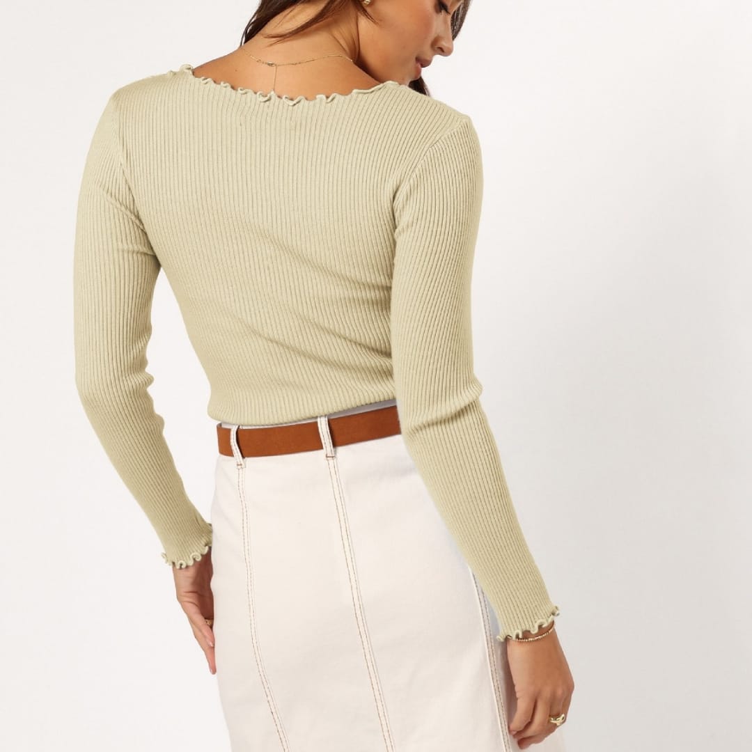 Stay cozy and elegant with our Womens Ribbed Soft Elastic Knitted Long Sleeve Top stretchy, breathable, and perfect for effortless everyday style.