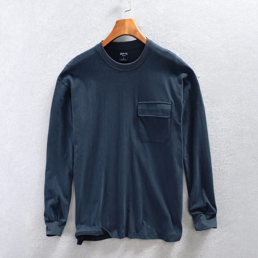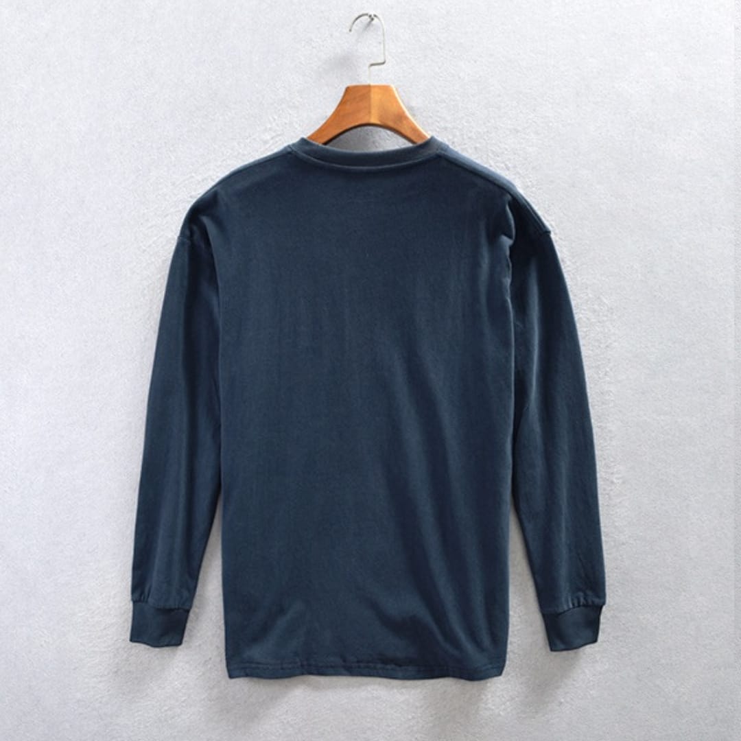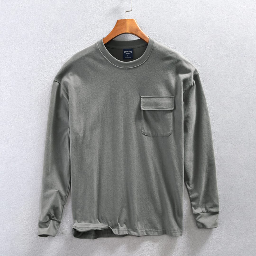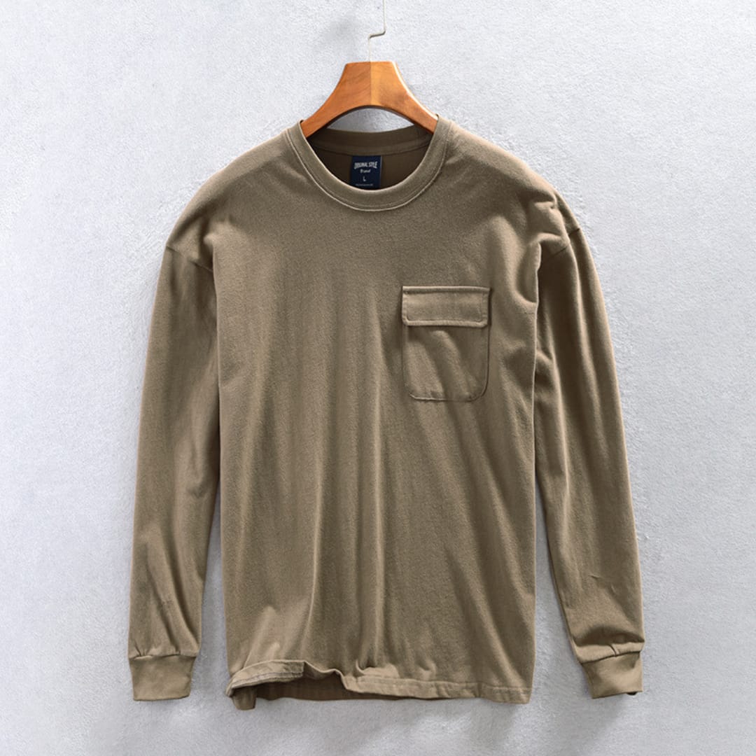 Comfortable and warm pure cotton sweatshirt for men, featuring ribbed details, chest pocket, and an O-neck designideal for autumn and winter.