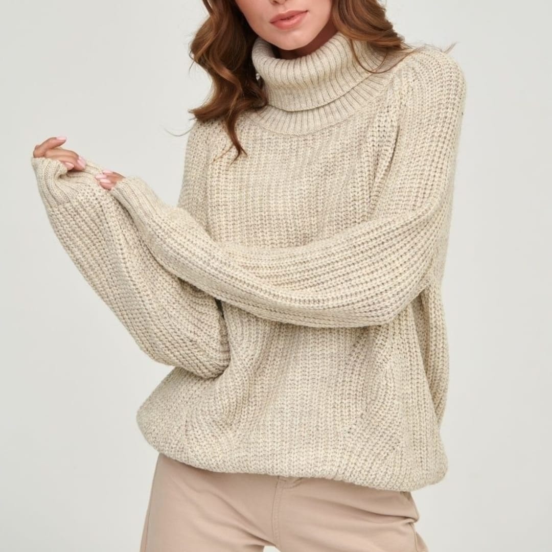 Stay wrapped in warmth and texture with this thick ribbed turtleneck sweaterperfectly loose and stylish for winter comfort.