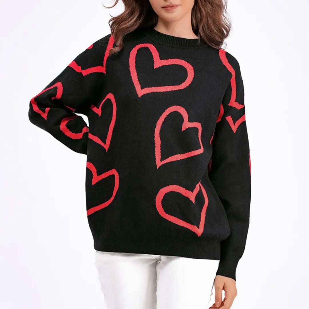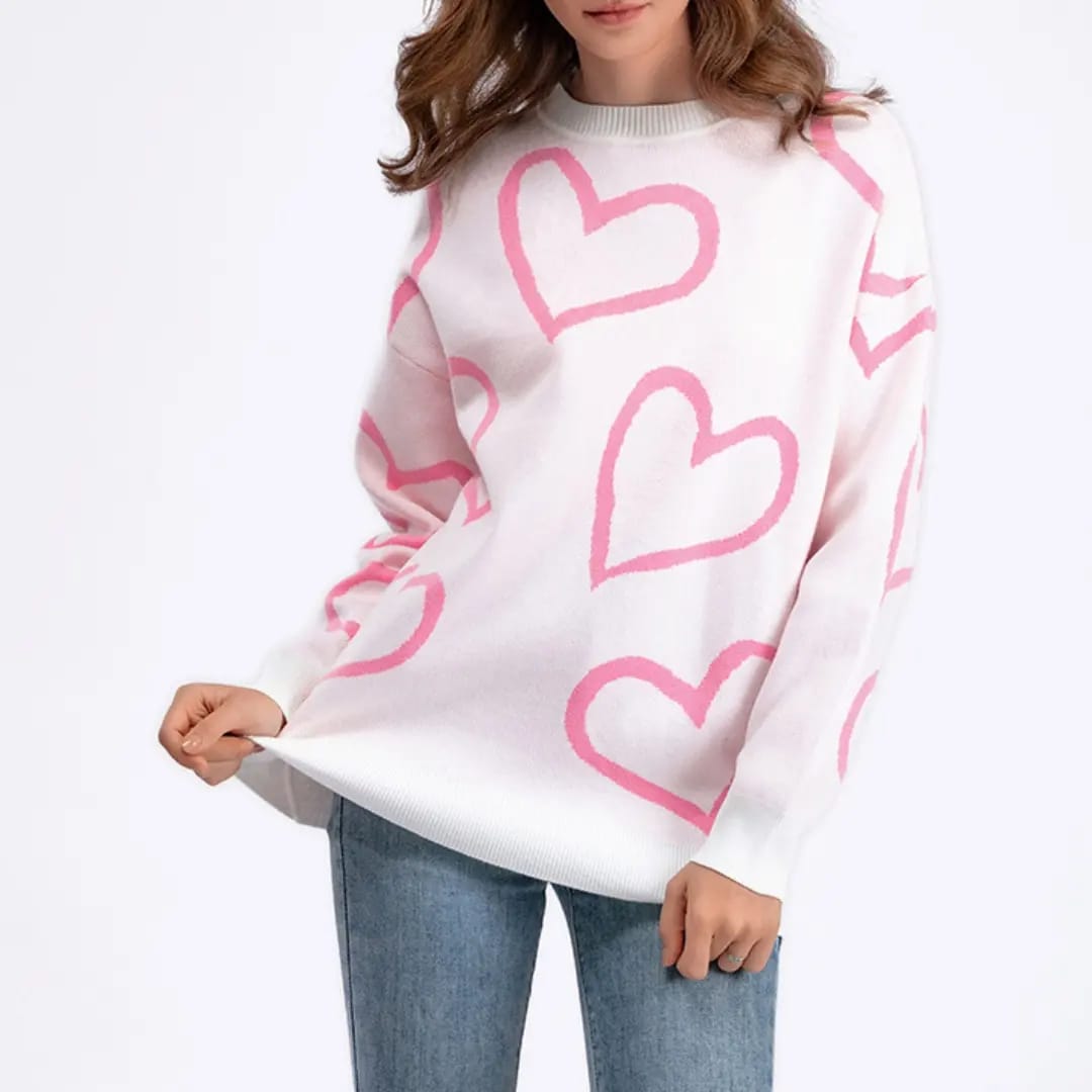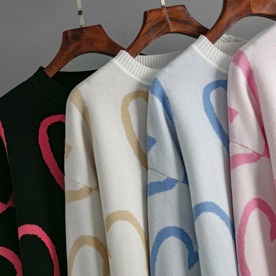 Cozy and cute, this ribbed round neck sweater features a charming “Love Contract” design perfect for autumn and winter styling.