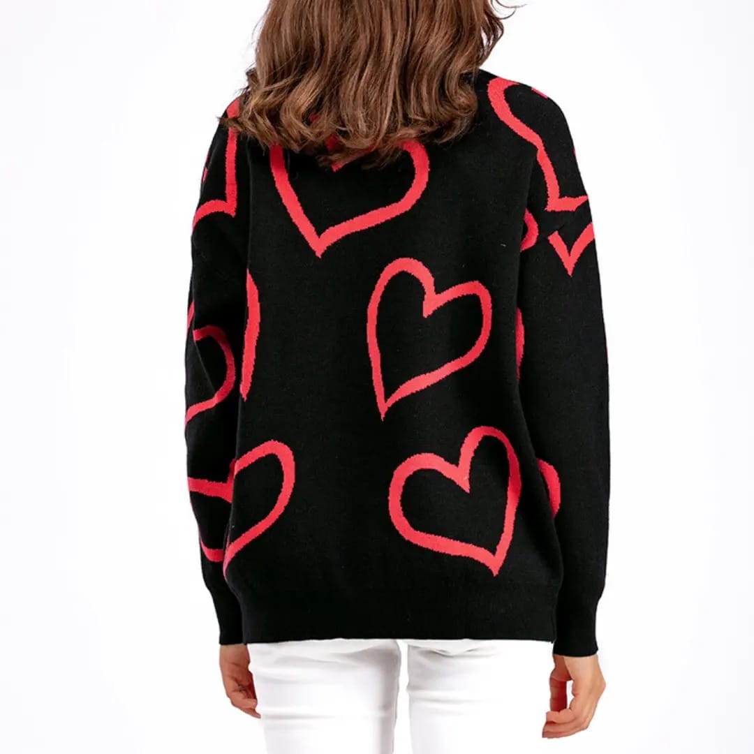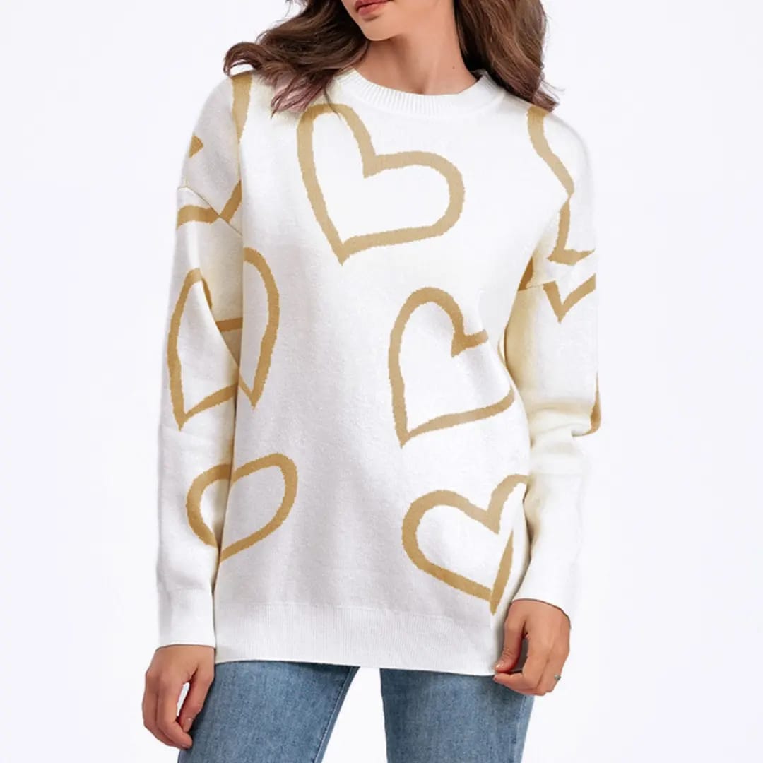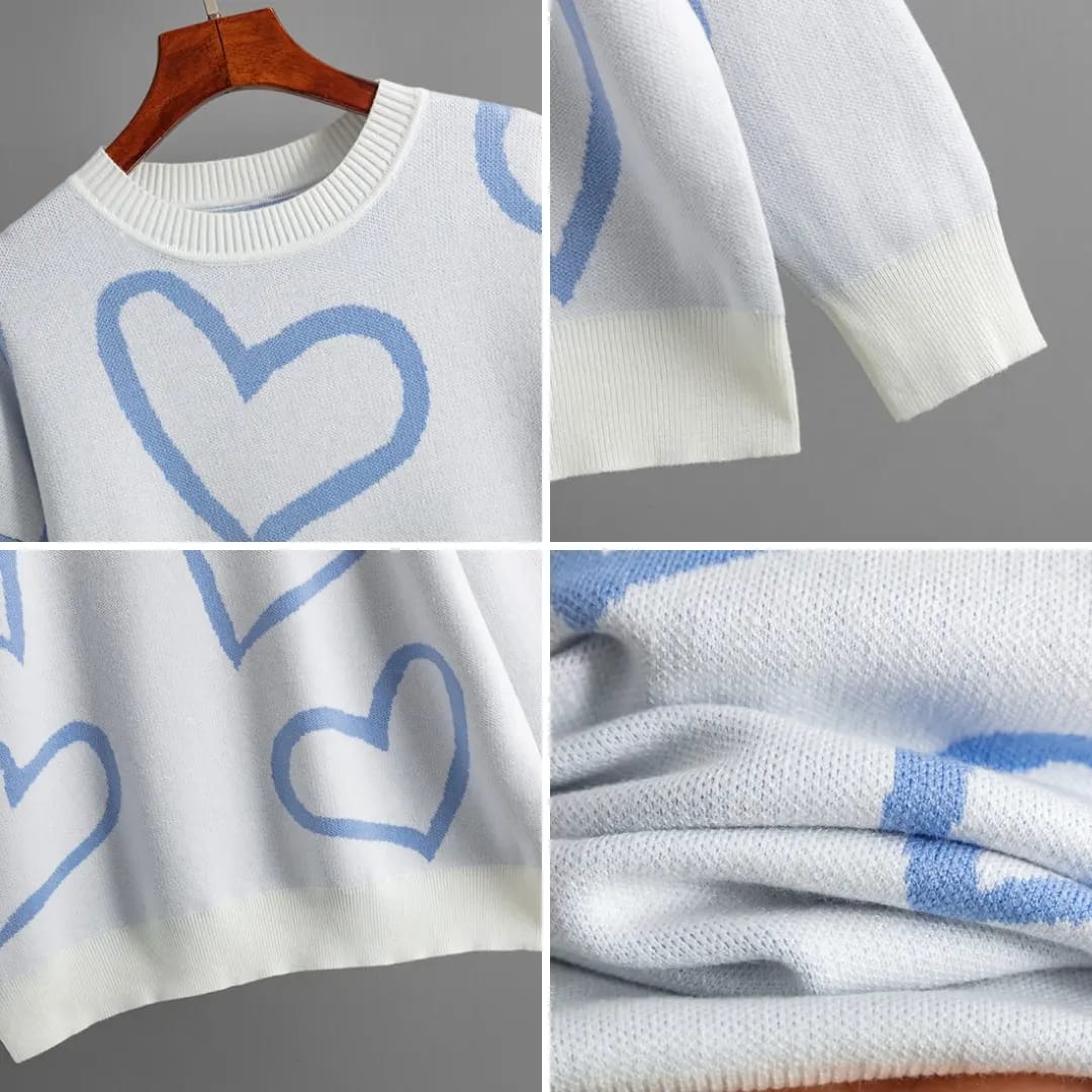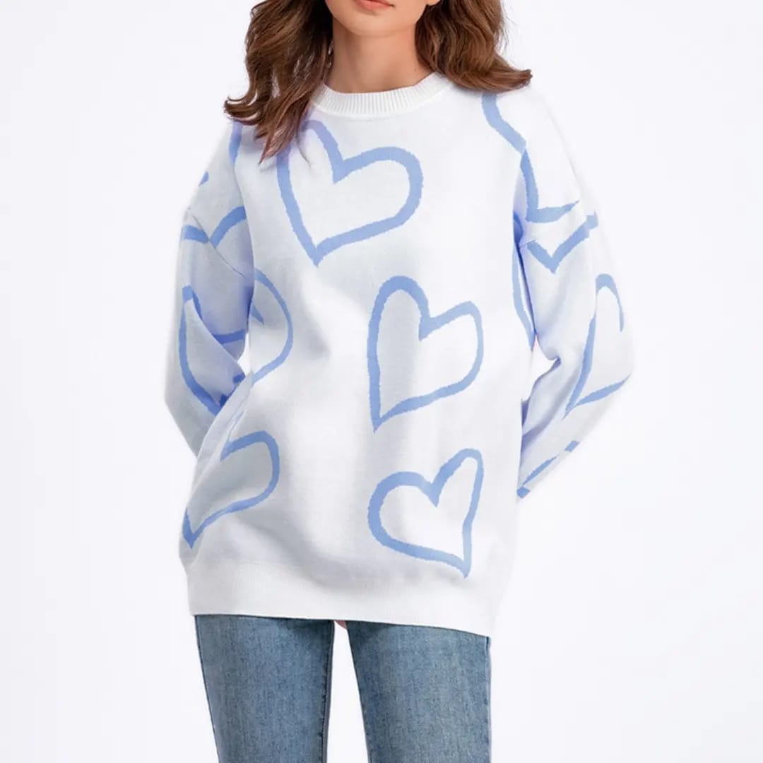 Cozy and cute, this ribbed round neck sweater features a charming “Love Contract” design perfect for autumn and winter styling.