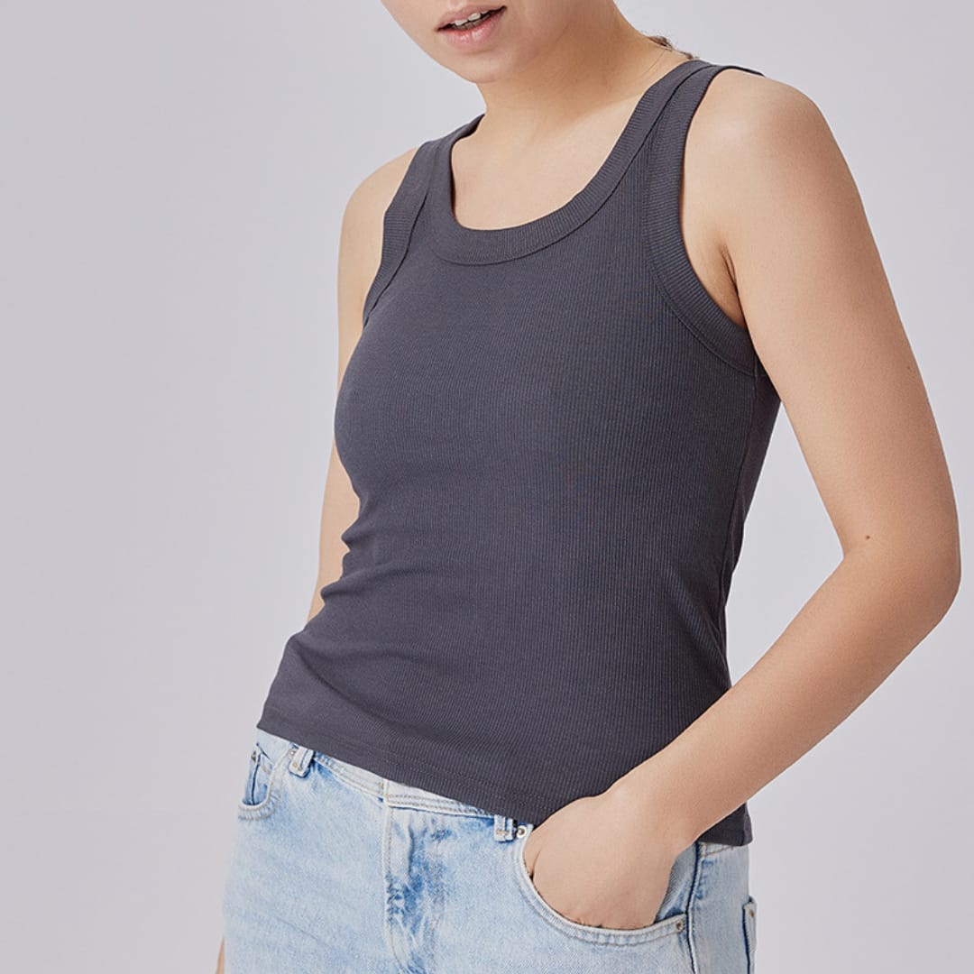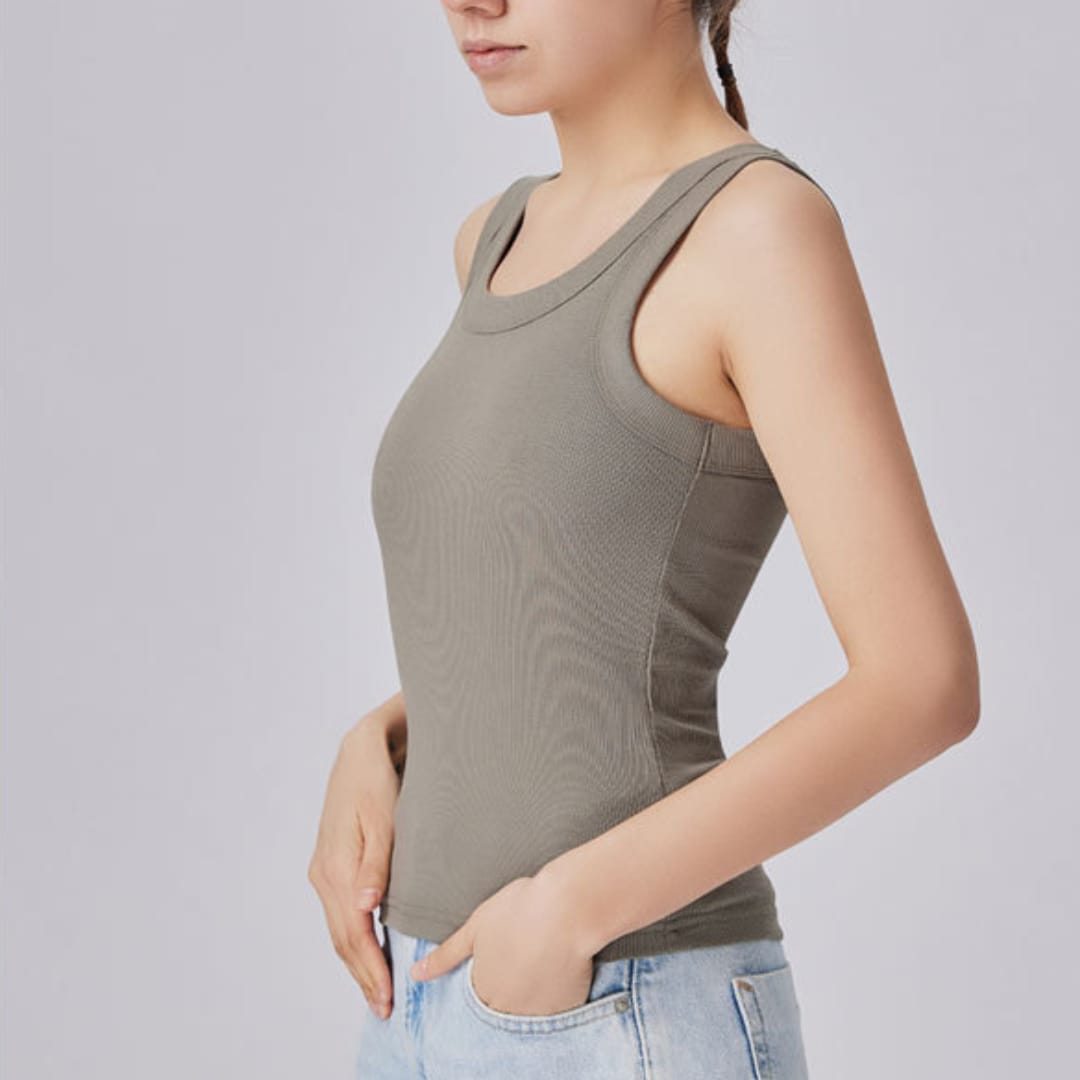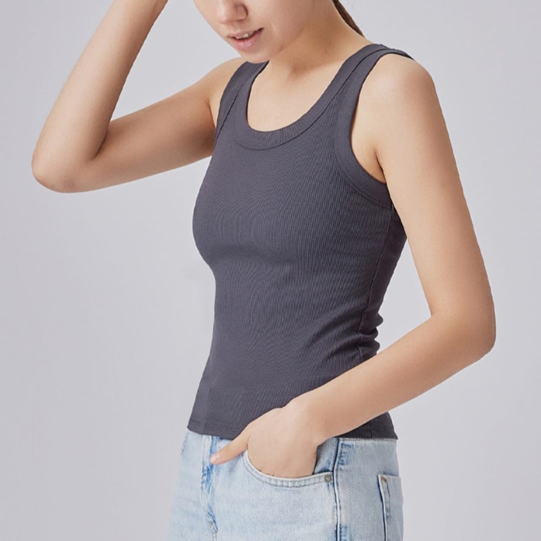 Sleek, simple, and stylish the Womens Ribbed Sleeveless Round Neck Top is perfect for everyday wear and effortless summer layering.
