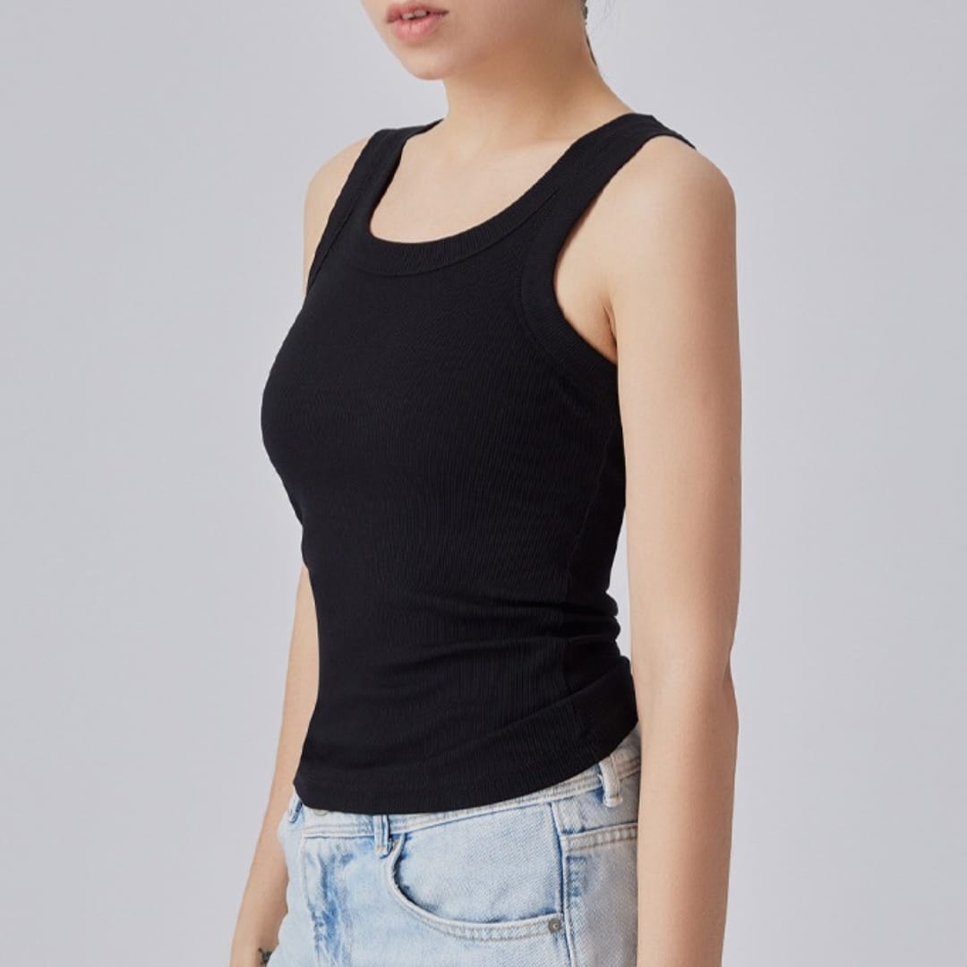 Ribbed Sleeveless Round Neck Top