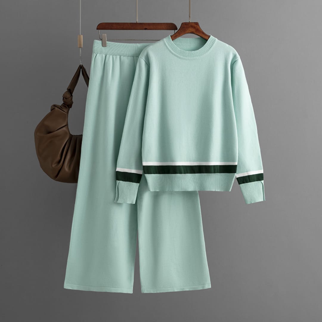 Soft and stylishJ women’s knit set featuring a round neck top and matching pants for effortless everyday elegance.