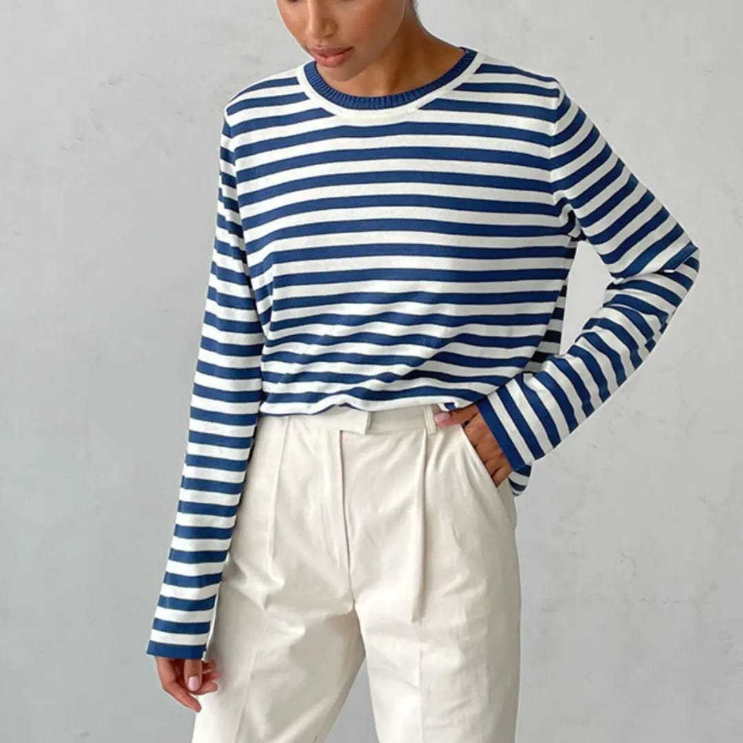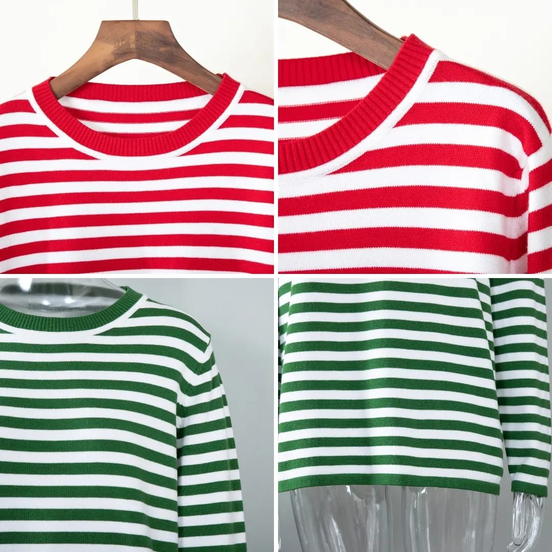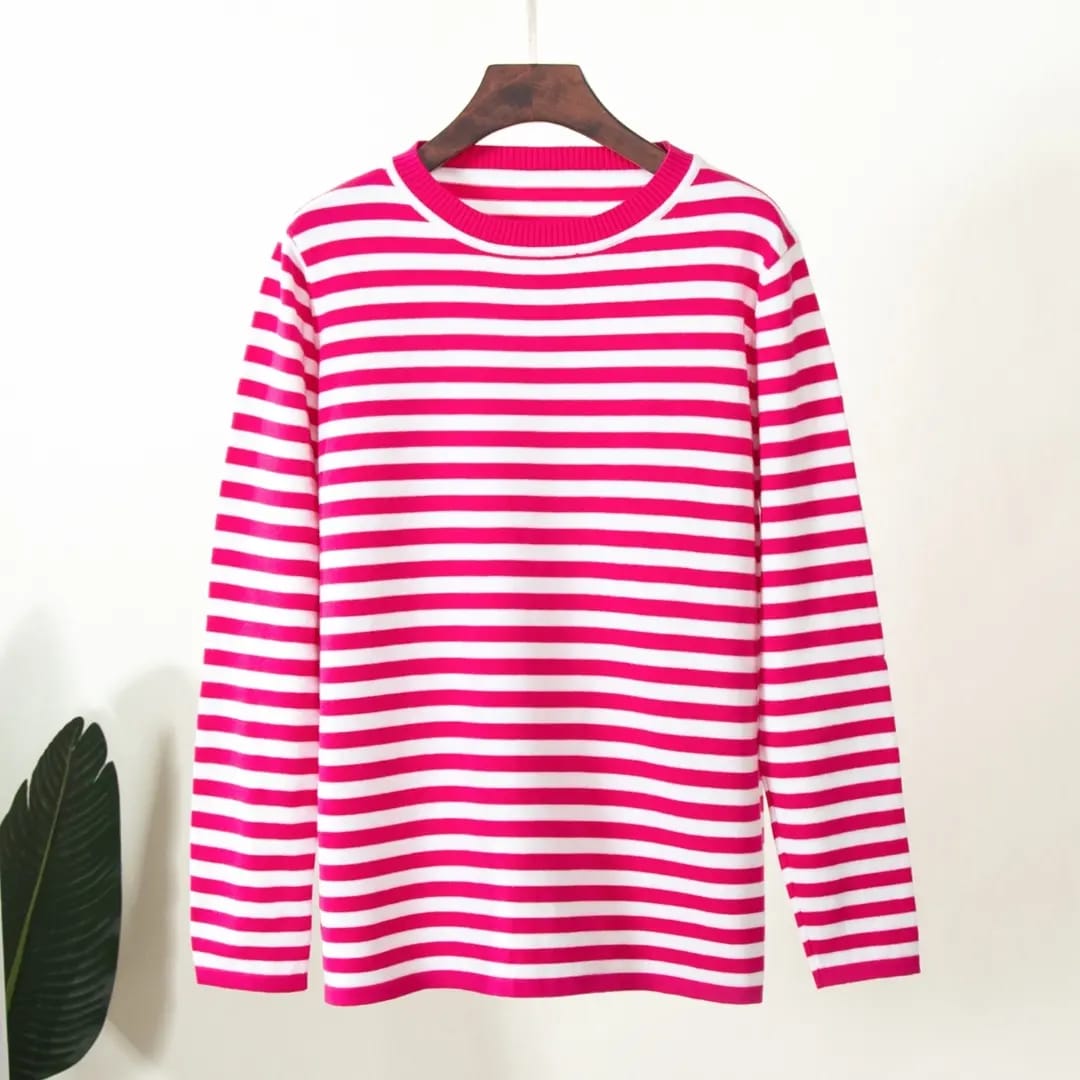 A classic striped knit pullover designed for comfort and style across autumn, winter, and spring seasons.Material: 50% Visc