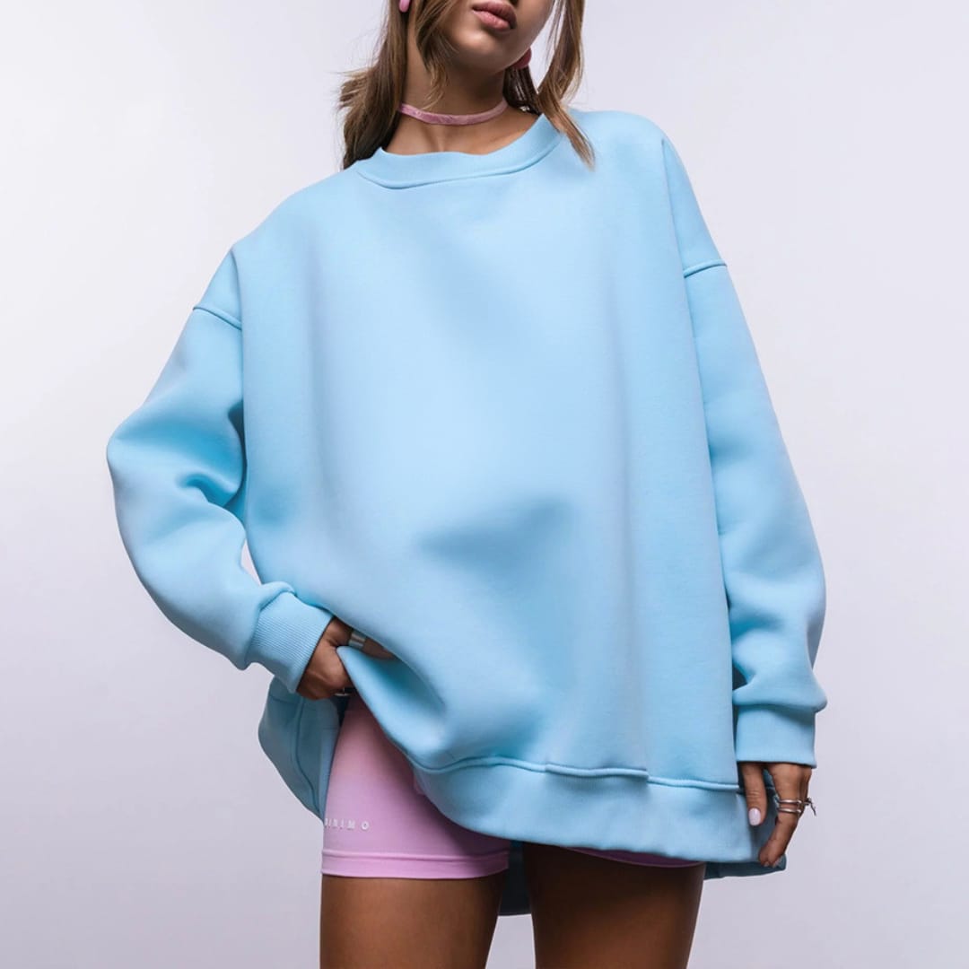 Comfortable round neck oversized sweater for a relaxed and stylish look.