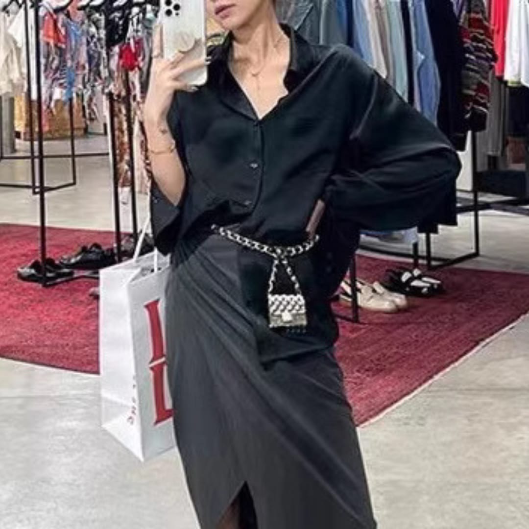 Effortlessly chic and smooth to the touch, this Satin Loose Classic Button-up Blouse brings timeless elegance to your everyday and evening looks.