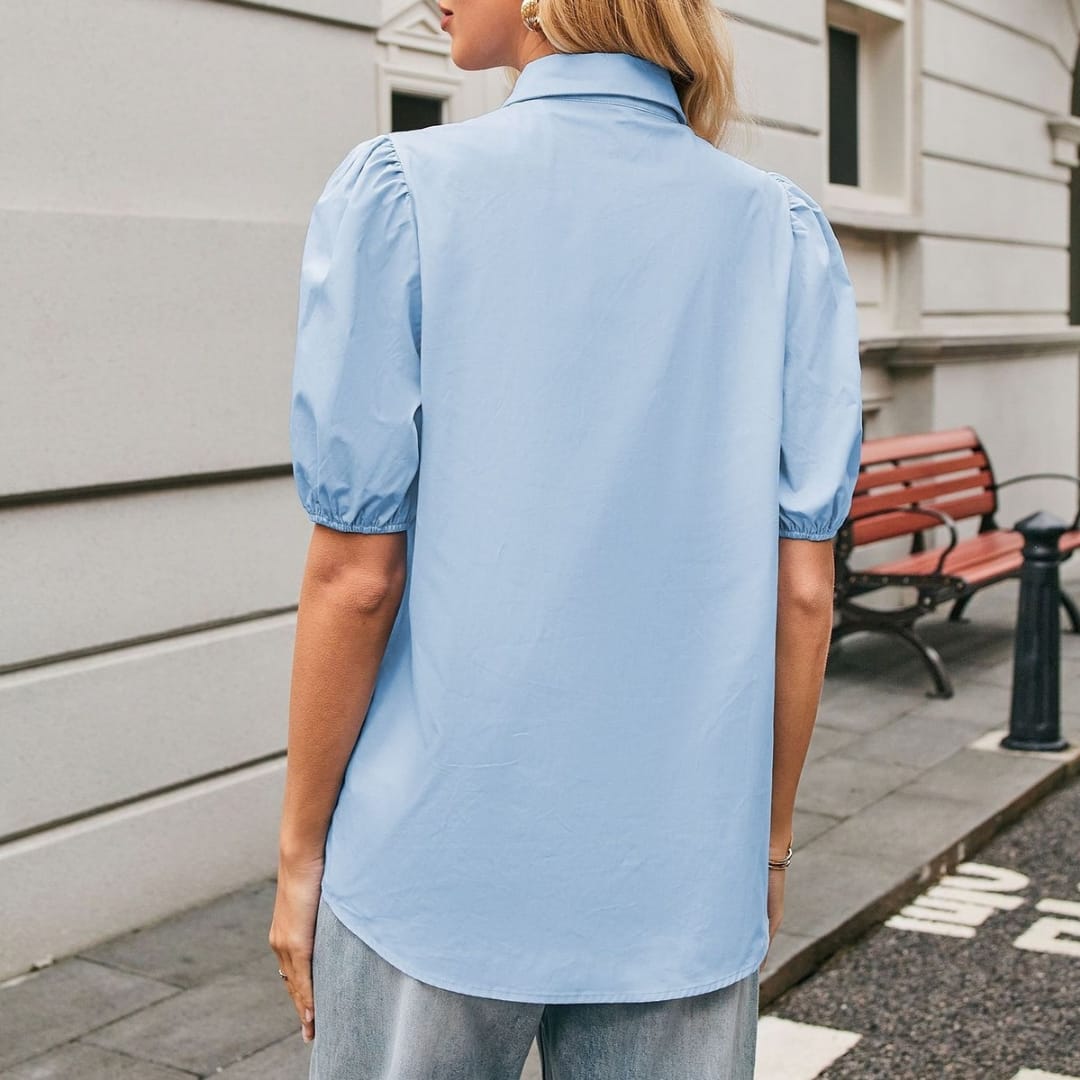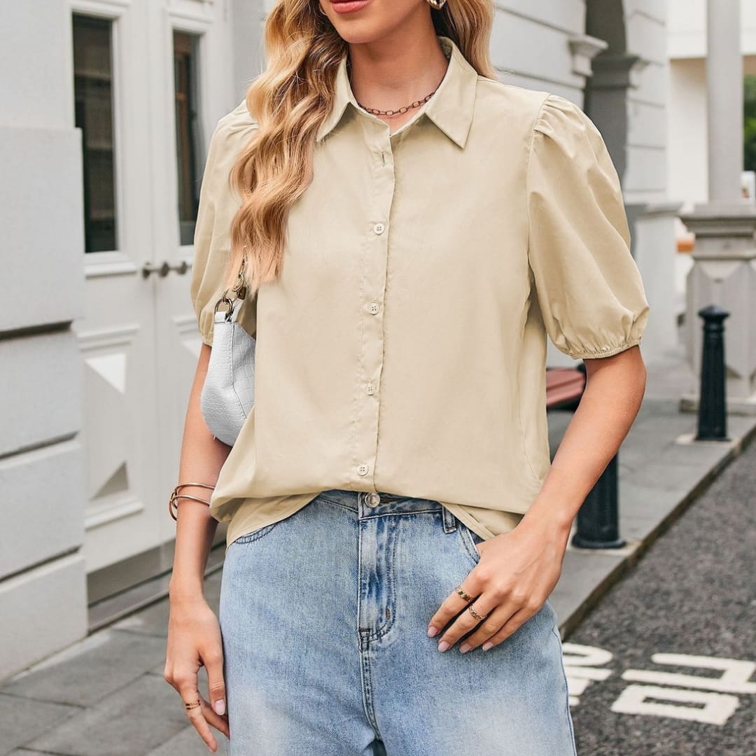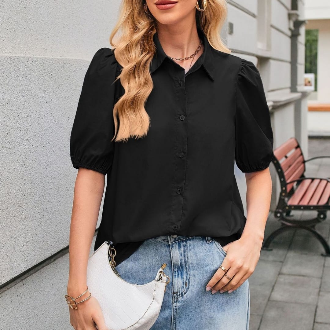 Embrace feminine charm with our Women’s Short Puff Sleeve Viscose Shirt — soft, breathable, and perfect for spring, summer, and autumn style.