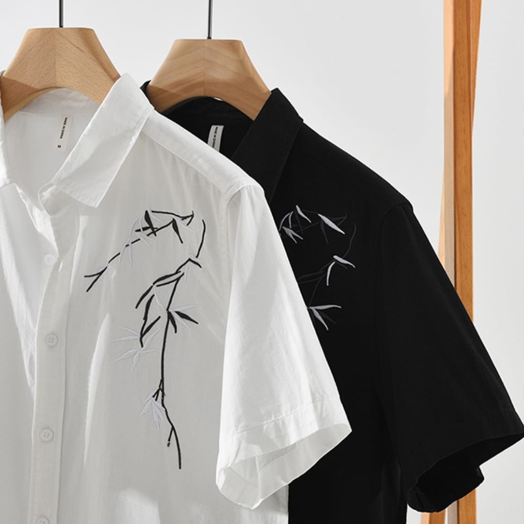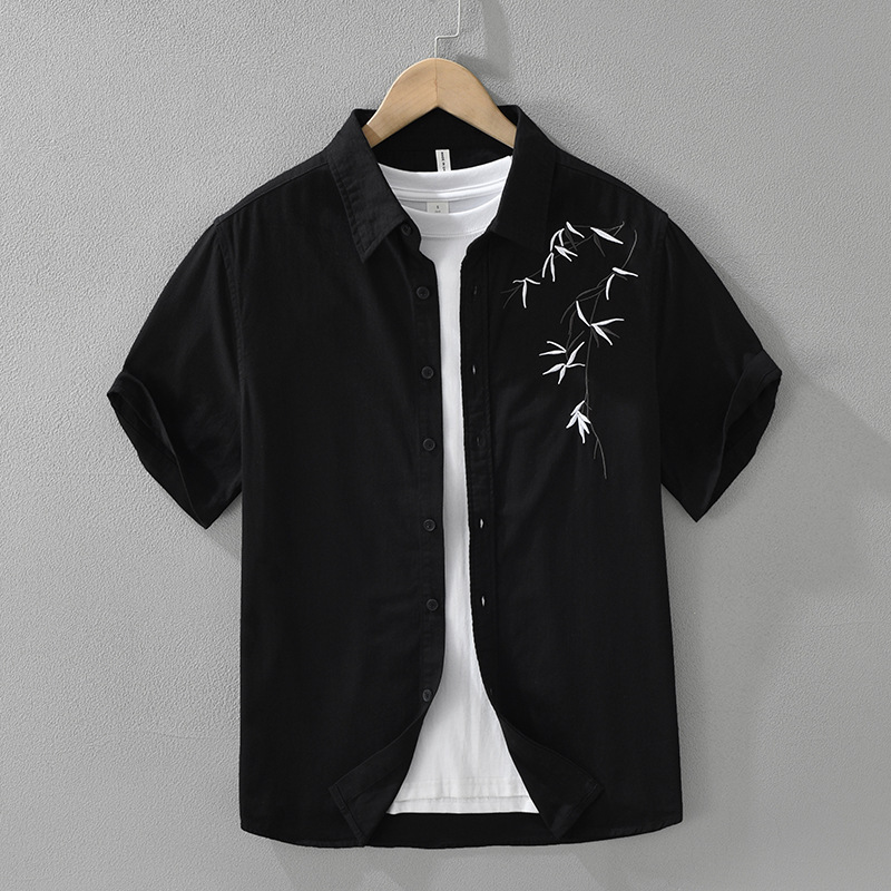 Short Sleeve Casual Shirt with Embroidery Design