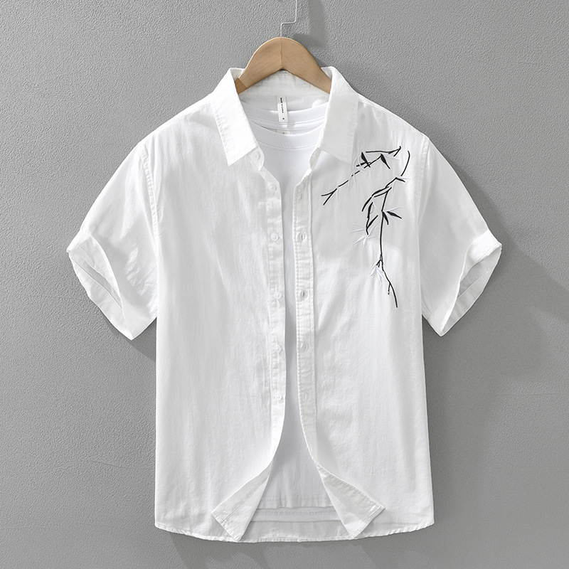 Classic mens summer short sleeve casual shirt with elegant embroidery design. Lightweight, breathable, and perfect for warm weather style.