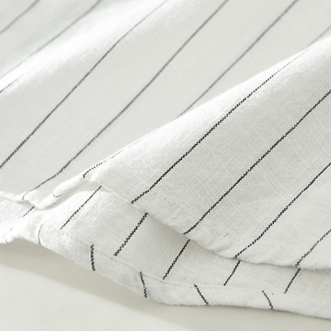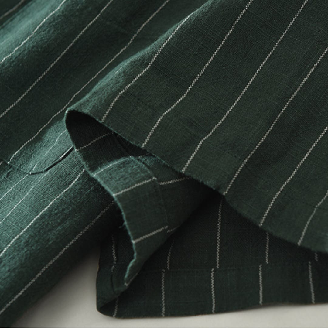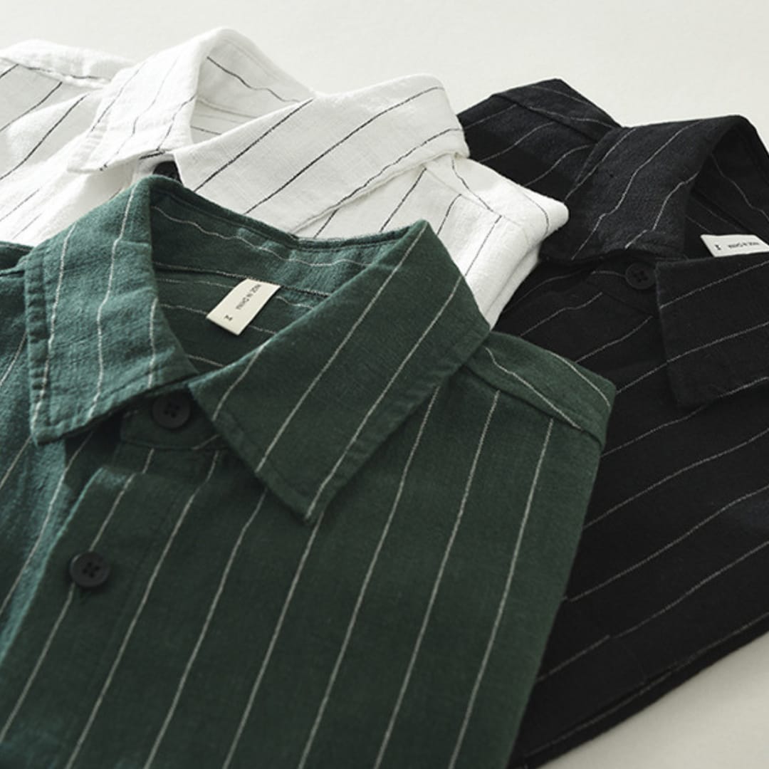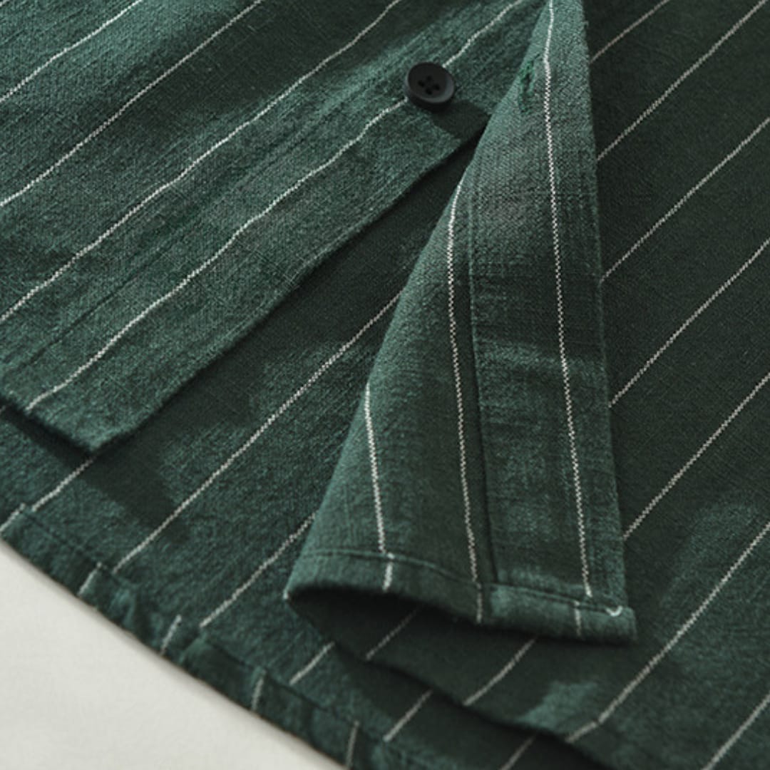Men’s short sleeve striped linen shirt with breathable fabric, relaxed fit, and timeless patternperfect for summer comfort and style.
