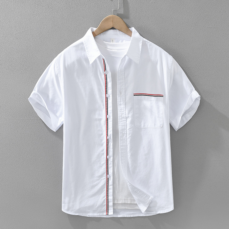 Stylish men’s short sleeve patchwork casual summer pure cotton shirt. Breathable, lightweight, and perfect for everyday wear.
