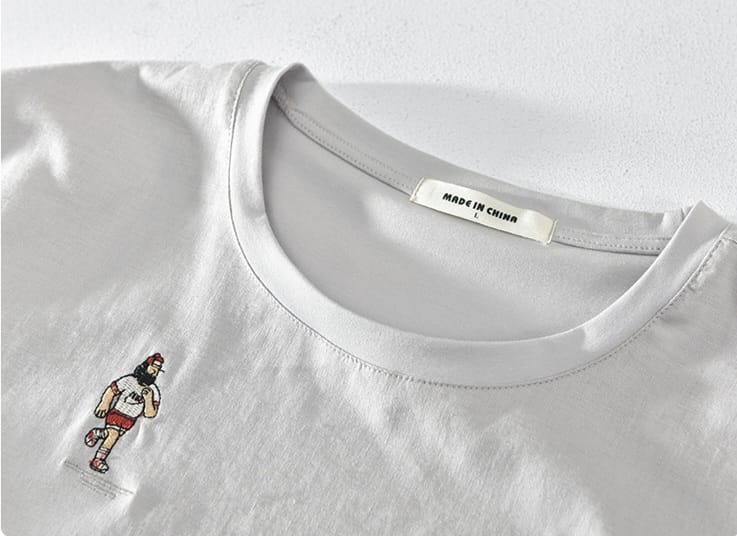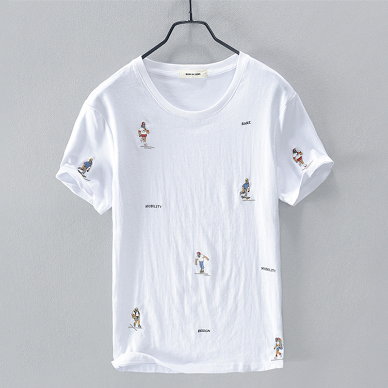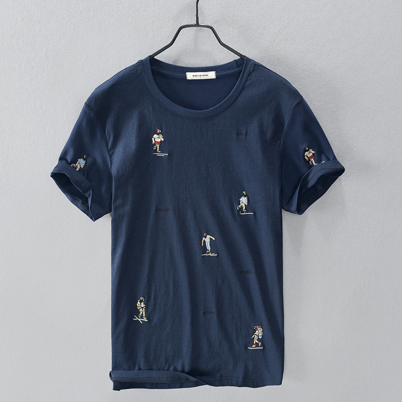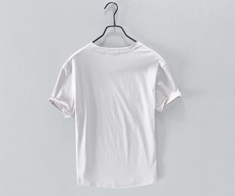 Mens solid color T-shirt featuring stylish embroidery detailsperfect for casual yet refined everyday looks.