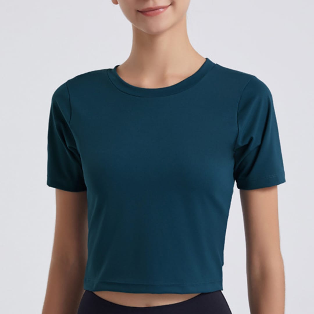 Stay cool and stylish during workouts with this slim fit stretchy short sleeve sports top, designed for ultimate summer comfort.