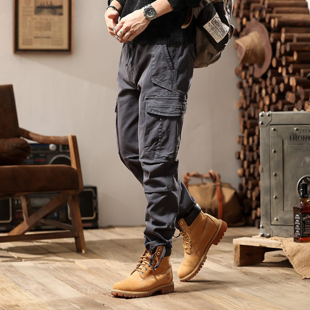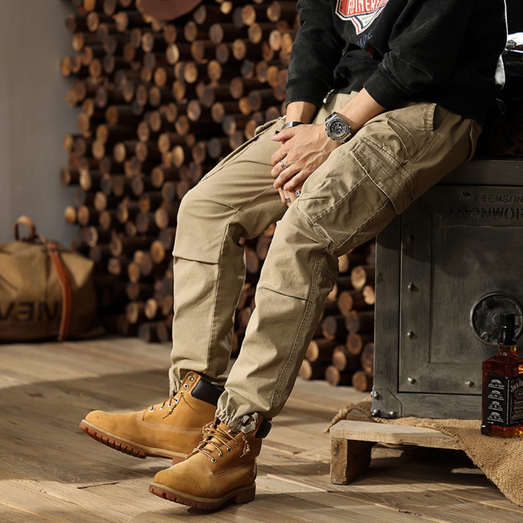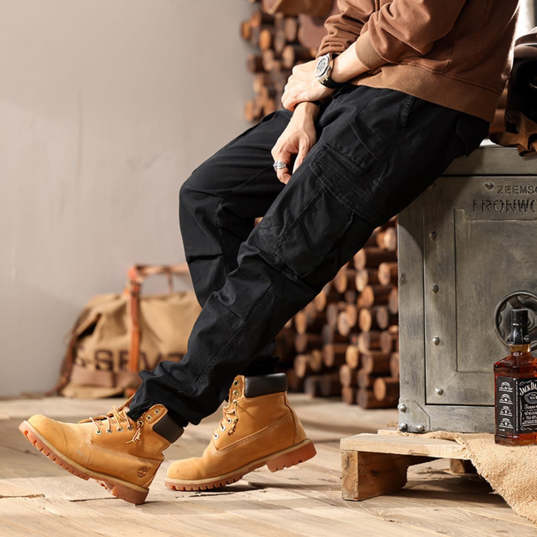 Gear up for the cold with mens solid color cargo pantsperfect for autumn and winter comfort, style, and utility.