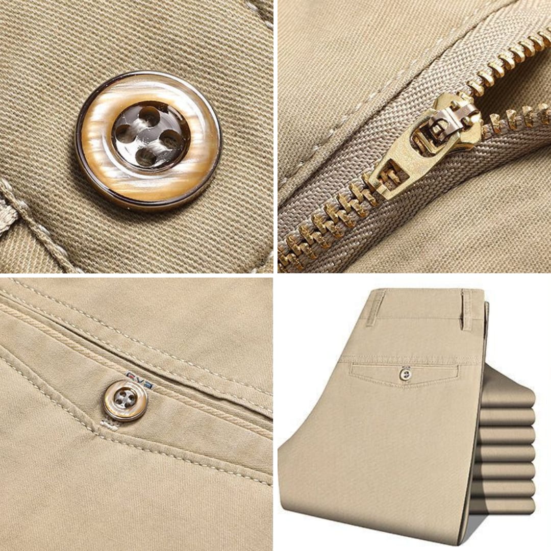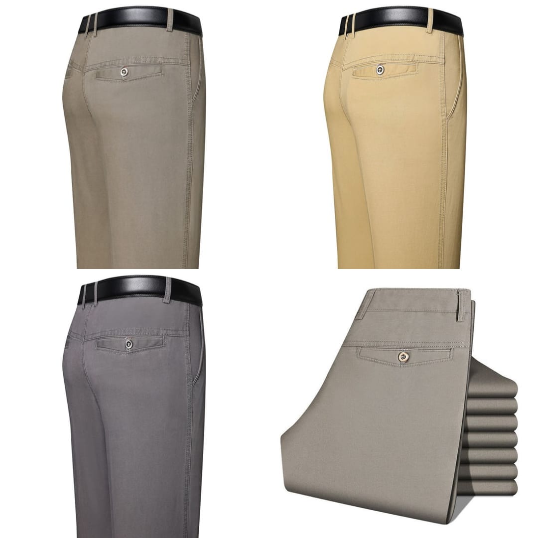 Classic style meets everyday comfort in these solid color men’s pants made from 100% pure cotton.
