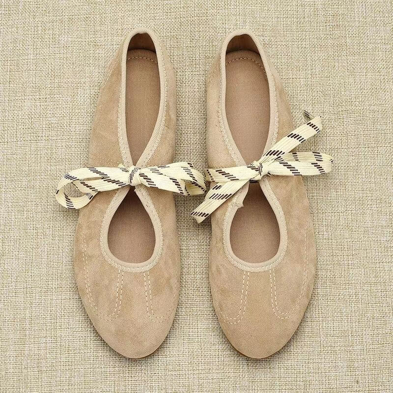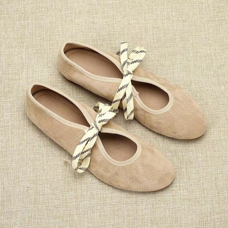Women Sport Chic Suede Lace-Up Ballerina a perfect blend of comfort and style, featuring soft suede, lace-up detailing, and a flexible sole for effortless everyday elegance.