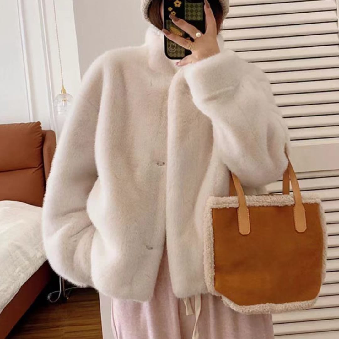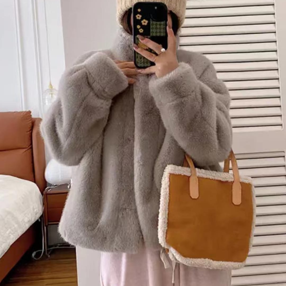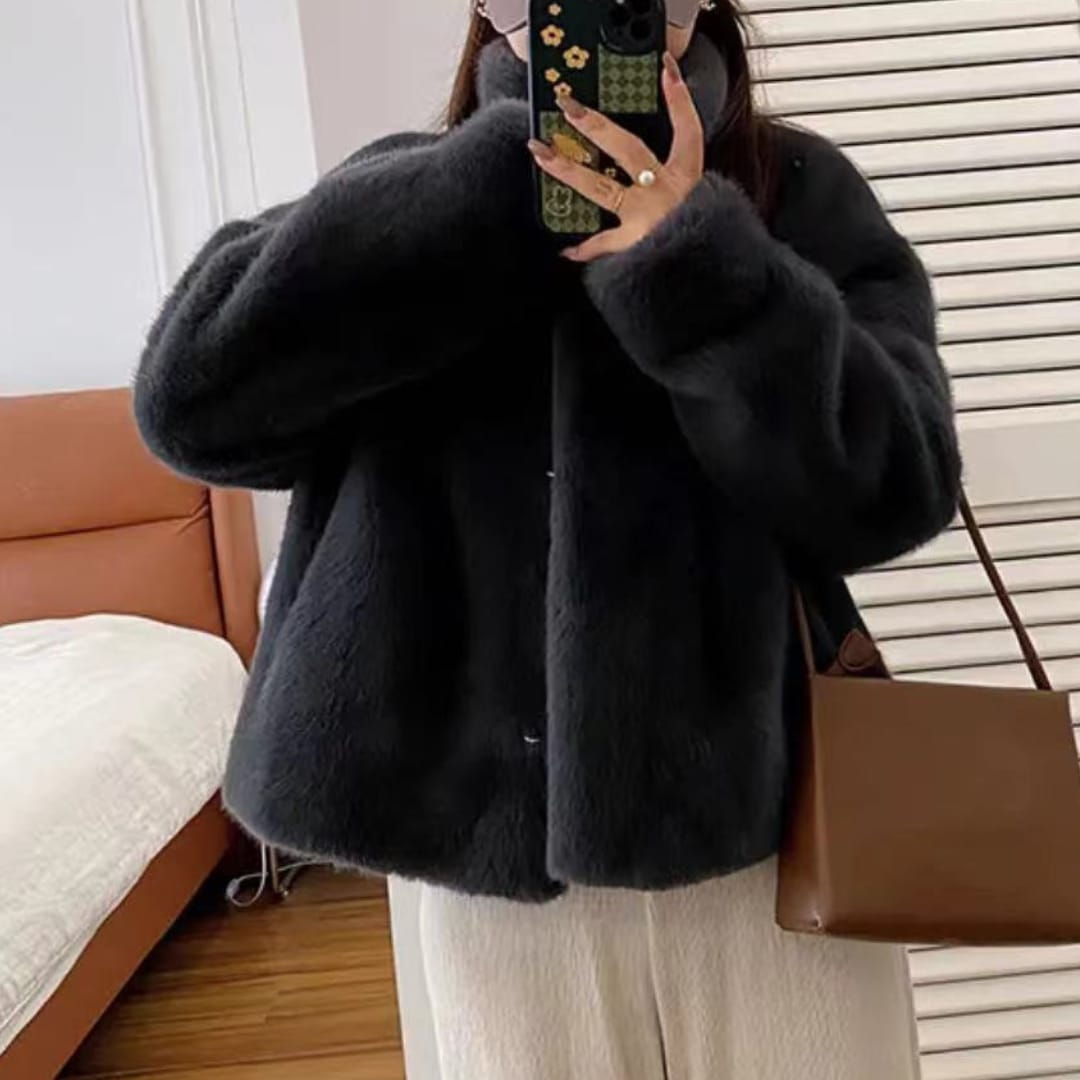 Stay warm and elegant with the Faux Fur Autumn and Winter Stand Up Collar Coat, featuring a soft plush finish, cozy insulation, and a stylish high-neck design for seasonal sophistication.