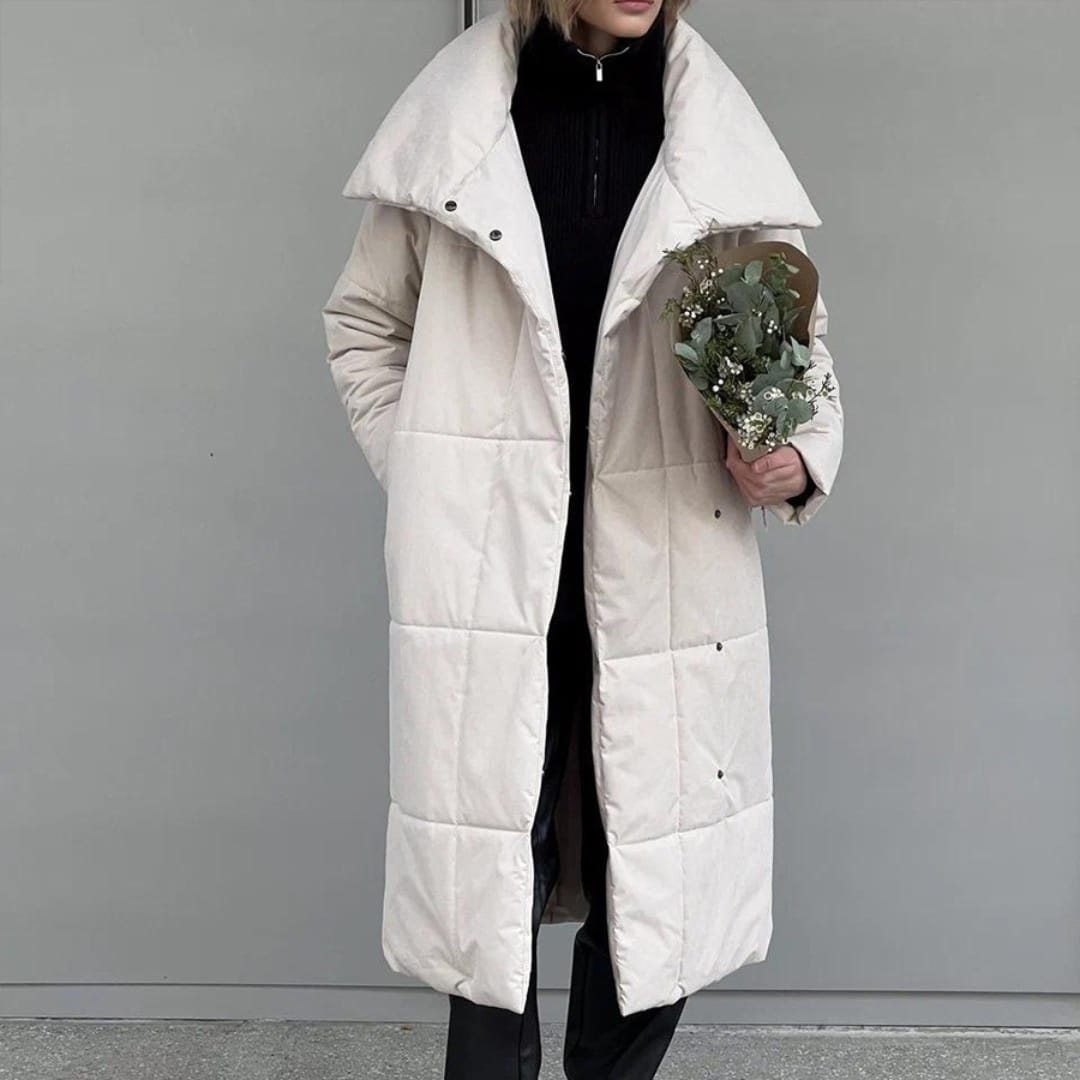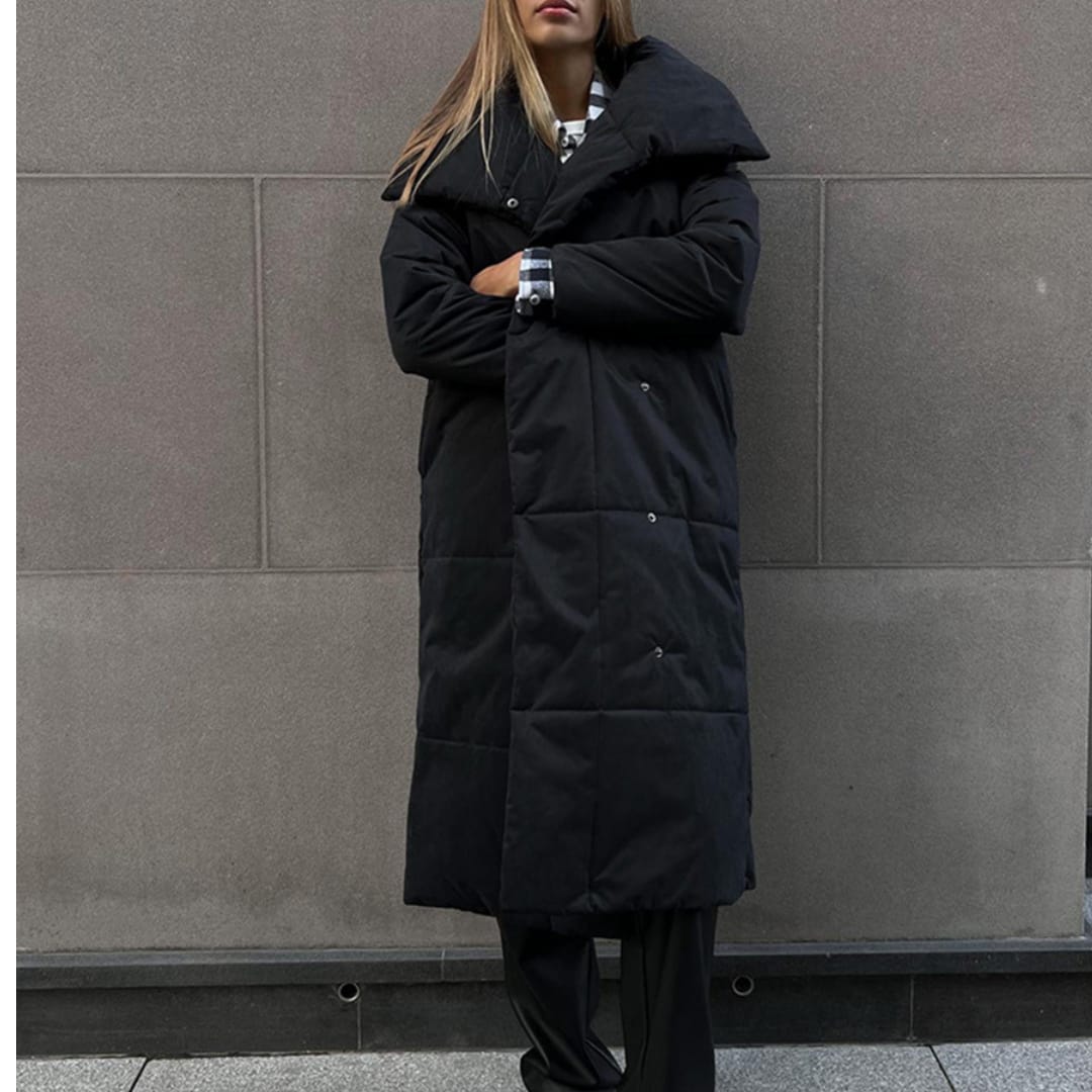 Warm stand-up collar thick jacket for a stylish and cozy winter look.