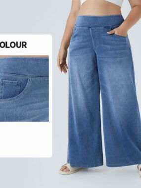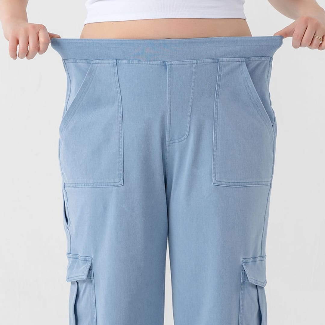 Stay effortlessly stylish with our Womens All Season Soft Highly Elastic Straight Cut Loose Fit Denim Cargo Pants where comfort meets casual-chic versatility.