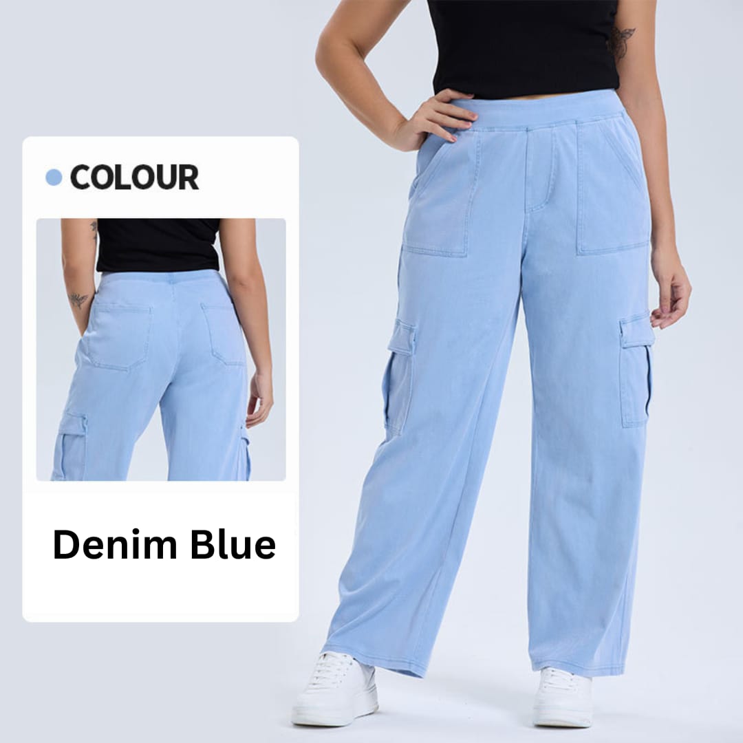 Step into year-round comfort and style with our Womens All Season Soft Highly Elastic Straight Cut Loose Fit Denim Cargo Pants. Crafted from premium soft stretch denim, these pants provide exceptional flexibility and a relaxed fit that flatters every body type. The high elasticity ensures easy movement, while the straight-cut, loose design delivers a modern, laid-back look. Functional cargo pockets add a trendy utility touch, making them perfect for everyday wear, travel, or casual outings. Designed for all seasons, these denim cargo pants pair effortlessly with tees, blouses, or hoodies for a chic, comfortable, and versatile outfit.