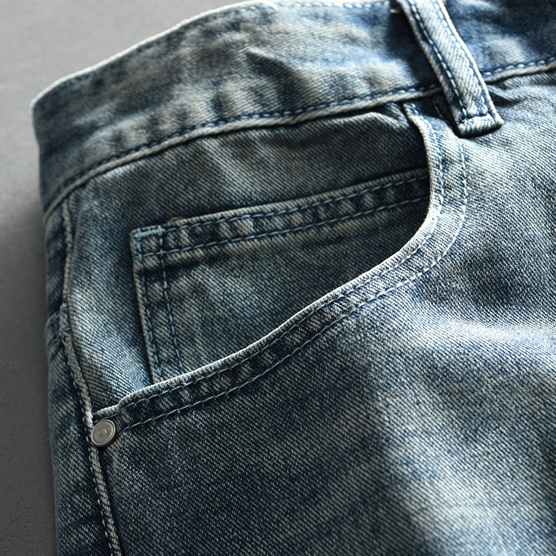 Straight Cut Washed Retro Jeans Pants