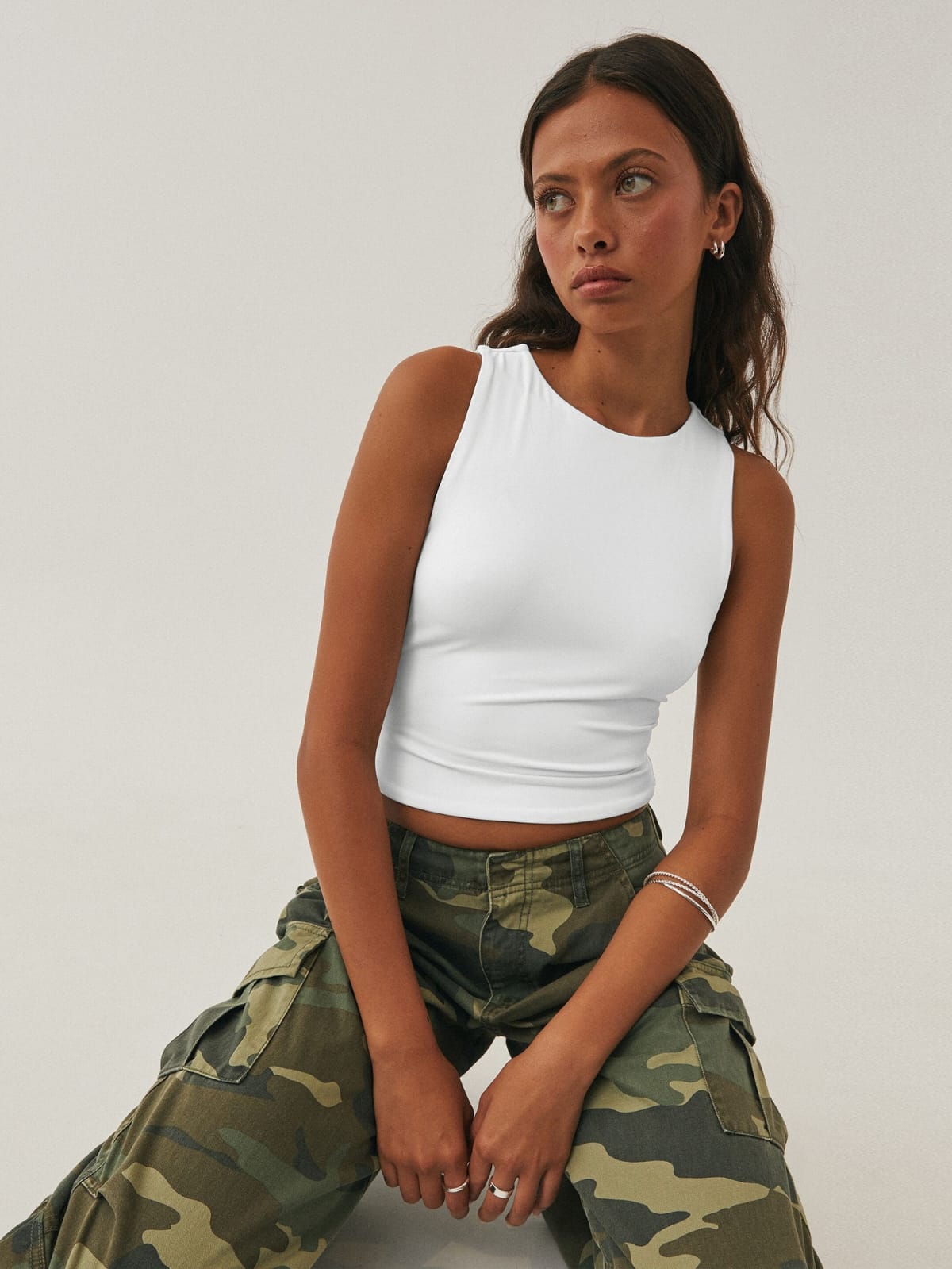 Keep it sleek and simple with this strapless fitted basic topperfect for layering or wearing solo with effortless style.
