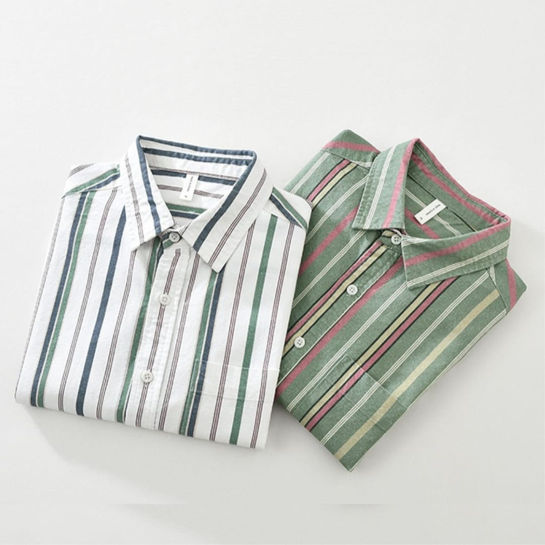 Men’s long sleeve striped casual summer shirt. Lightweight, breathable, and perfect for all occasions from work to weekends.