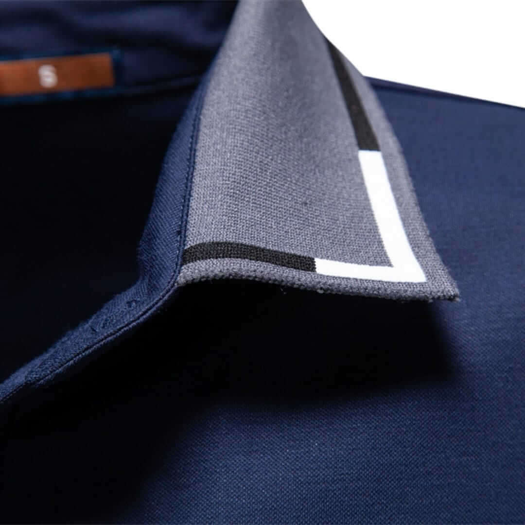 Mens striped collar polo T-shirt crafted from breathable fabric, offering all-day comfort, modern style, and a smart-casual look perfect for everyday wear.