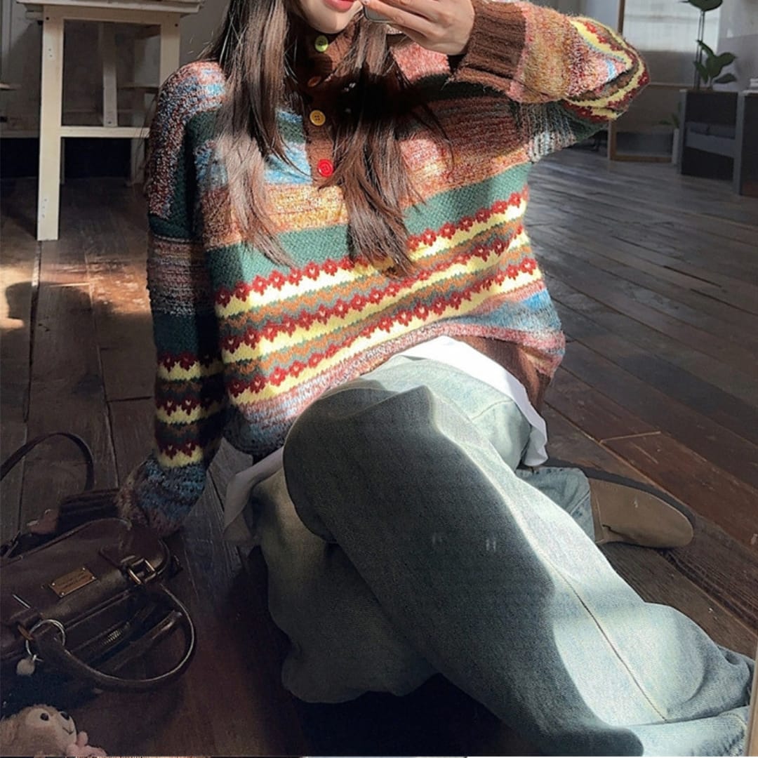 Upgrade your cold-season style with this Womens Autumn Winter Knitted Colorful Sweater, designed to combine warmth, comfort, and eye-catching fashion. Crafted from soft, high-quality knit fabric, it provides cozy insulation while remaining breathable for all-day wear. The colorful design adds personality and charm, making it perfect for casual outings, relaxed weekends, or everyday layering. Its comfortable fit allows easy movement and effortless pairing with jeans, skirts, or trousers. Durable craftsmanship ensures long-lasting quality, while the vibrant knit elevates your autumn and winter outfits. A cheerful and stylish seasonal essential for women who love comfort with a pop of color.