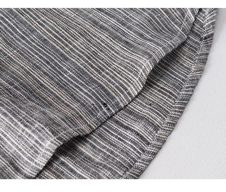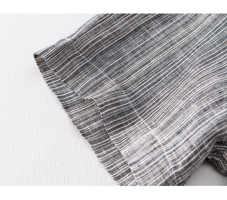 Striped Pure Linen Casual T-shirt with 3 Buttons