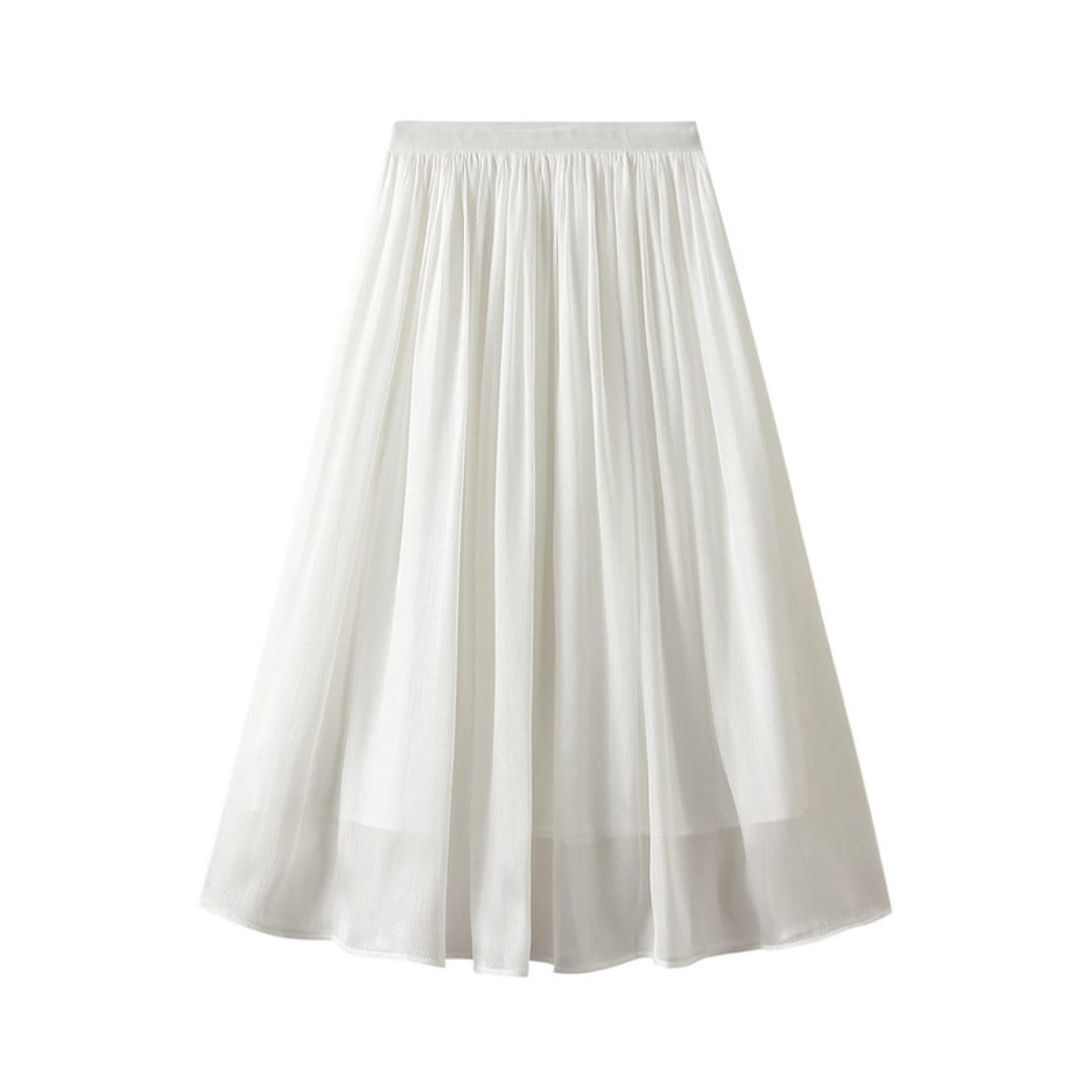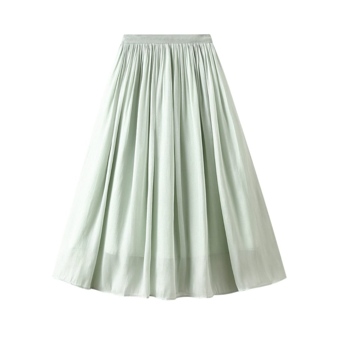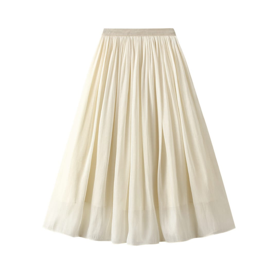Lightweight A-line midi skirt with soft lining, perfect for elegant and comfortable summer wear.