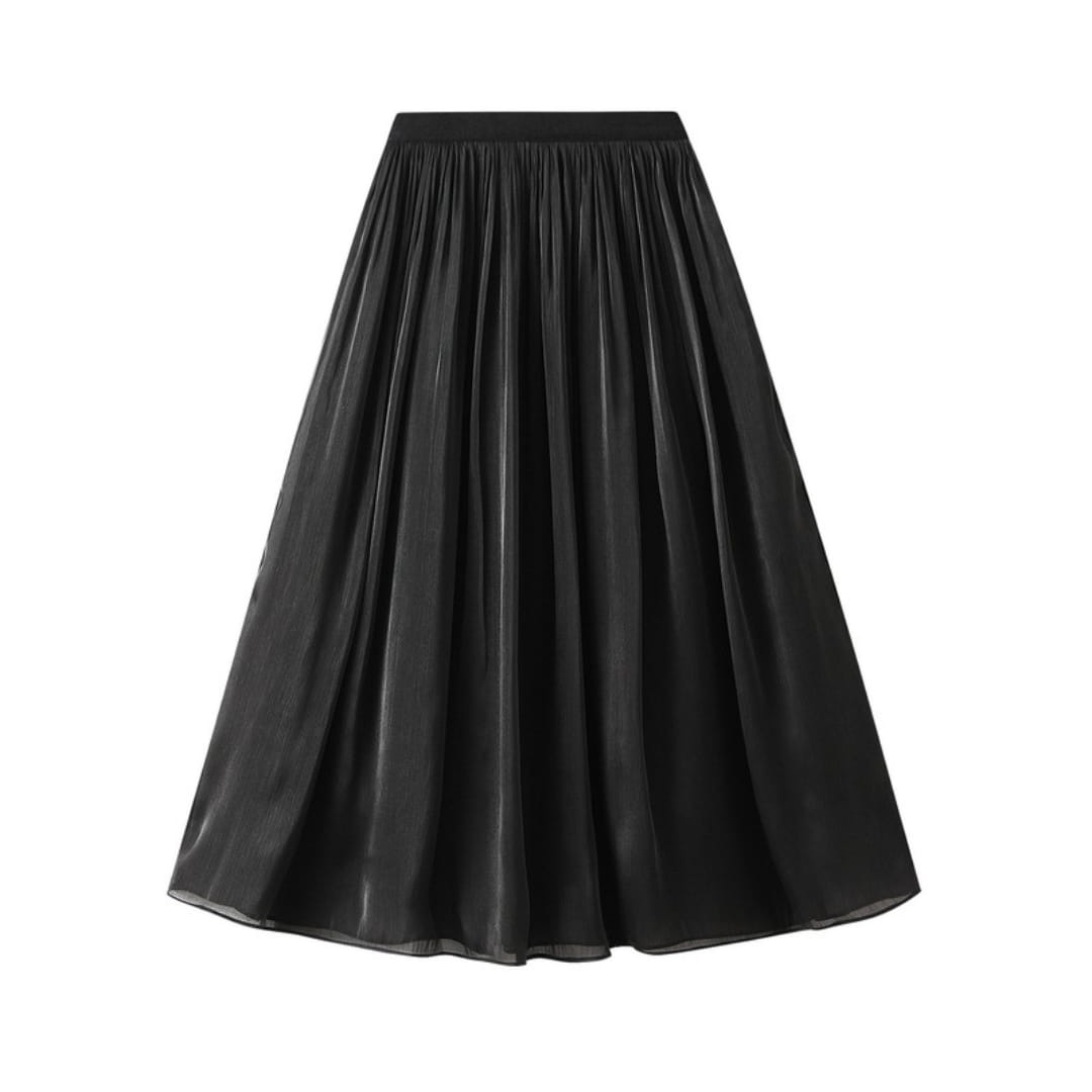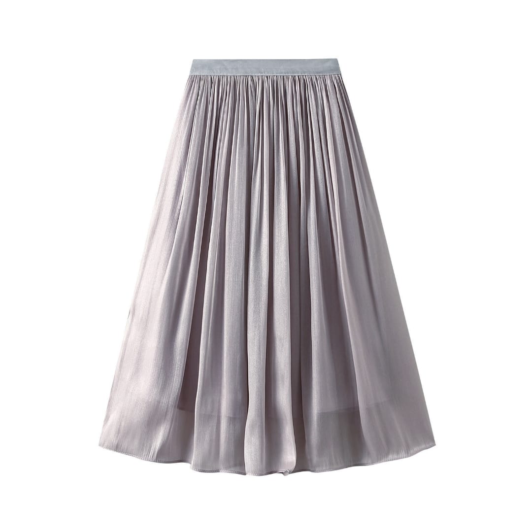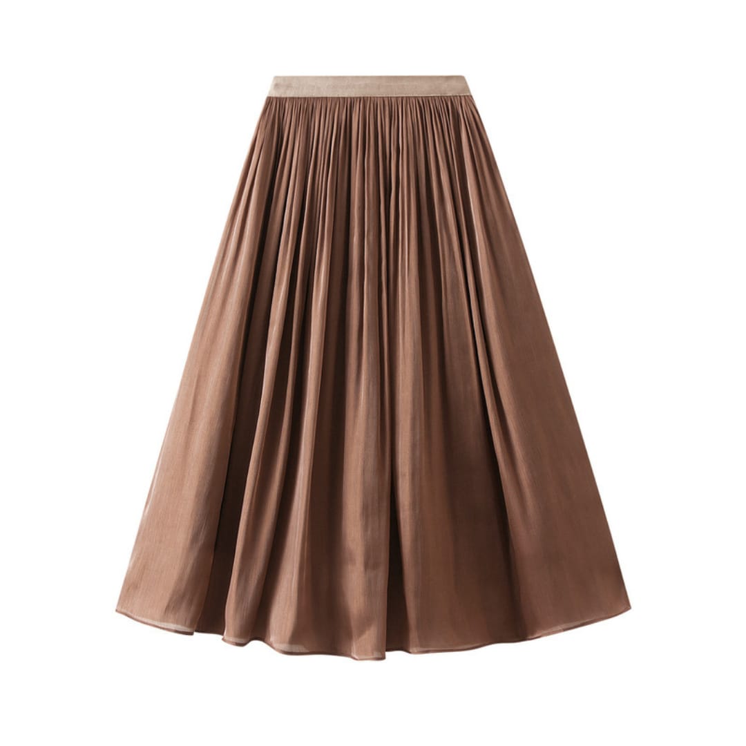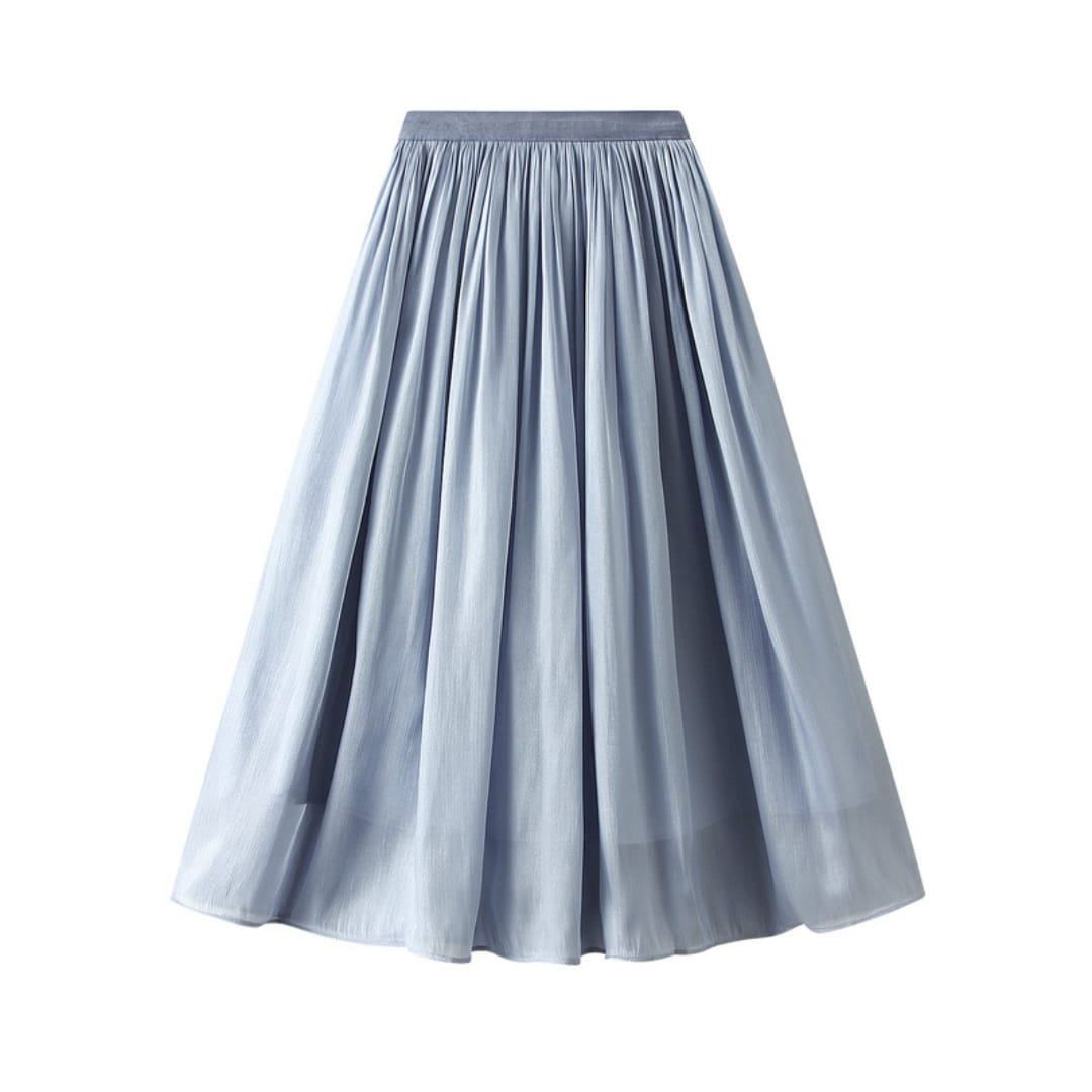 Lightweight A-line midi skirt with soft lining, perfect for elegant and comfortable summer wear.