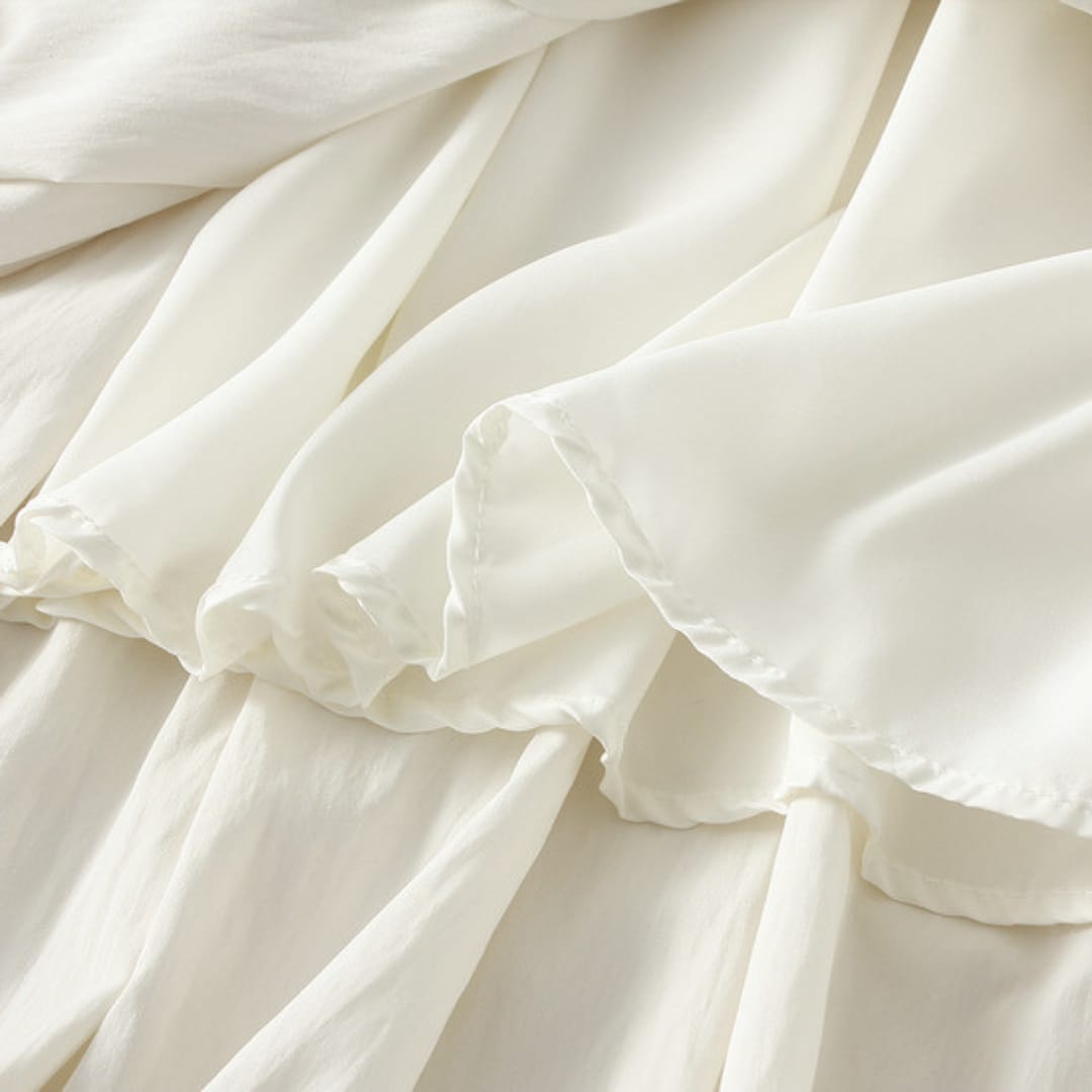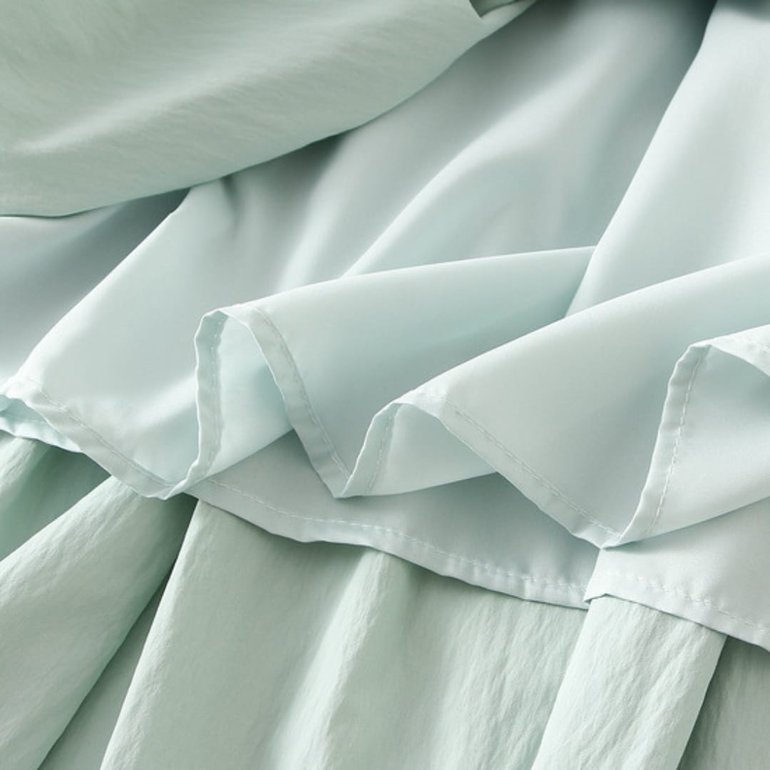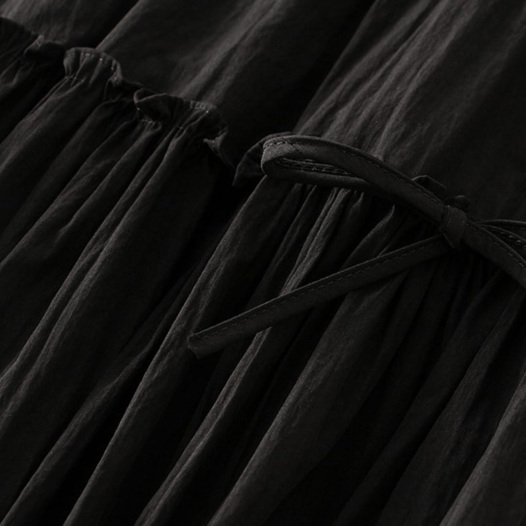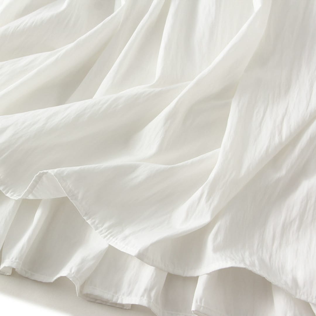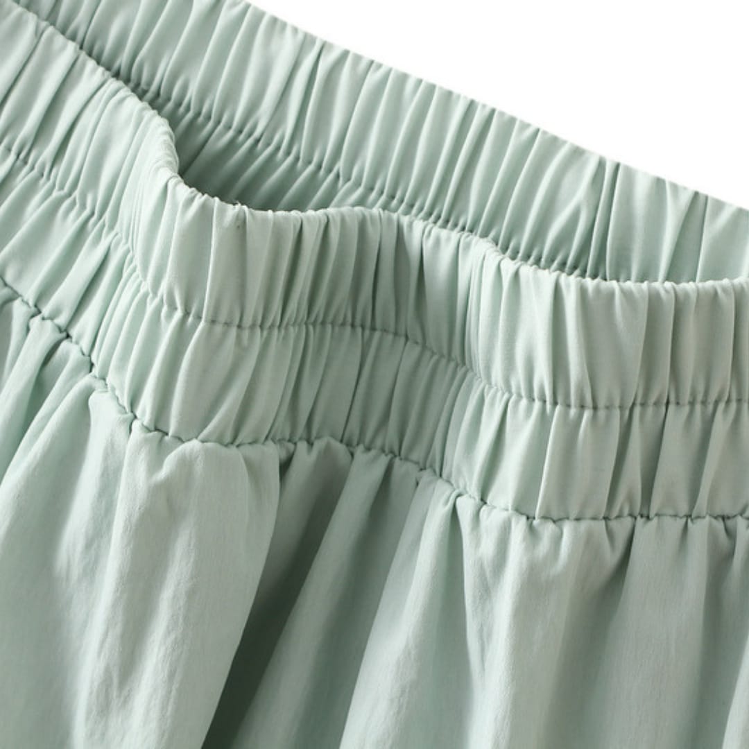 Lightweight A-line midi skirt in a solid color, perfect for versatile and comfortable summer styling.
