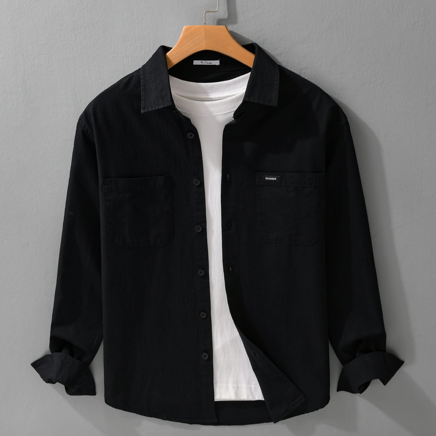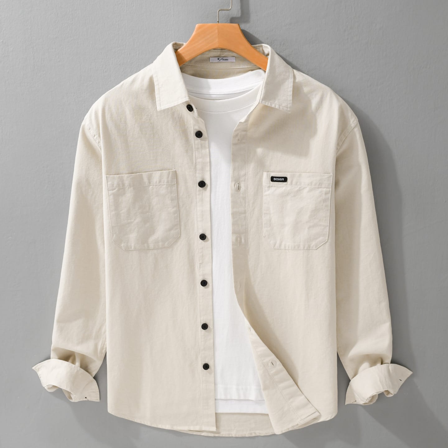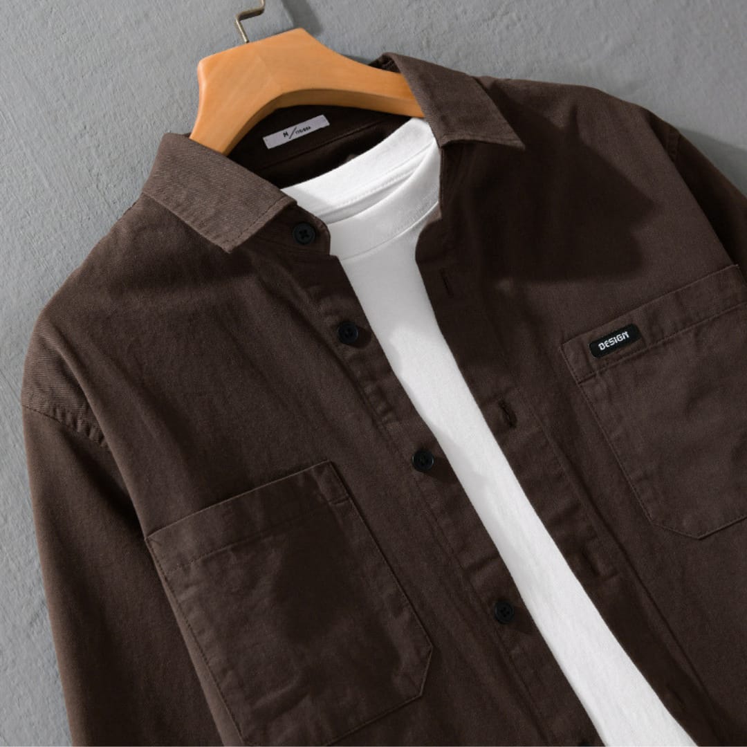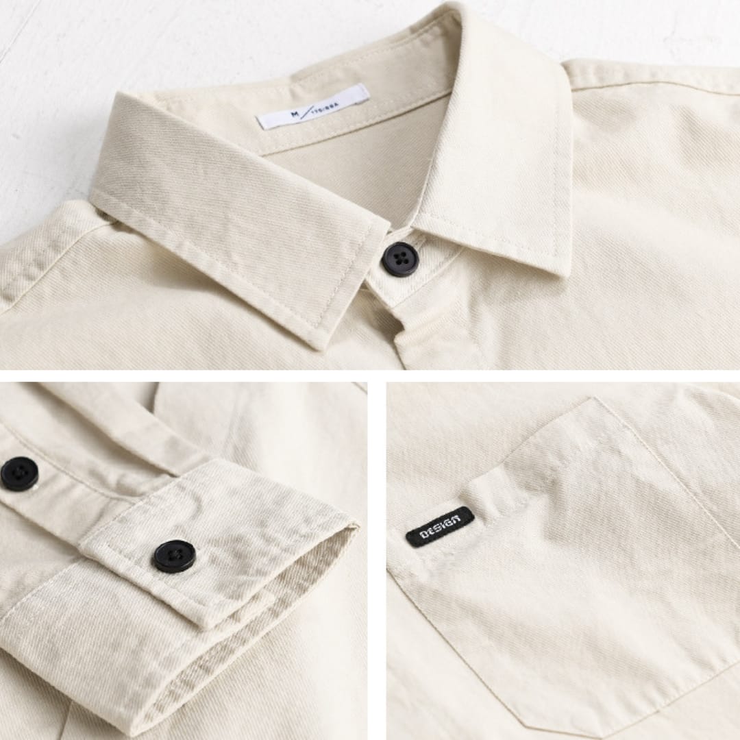 A durable mens thick long sleeve shirt with double chest pockets, perfect for fall, winter, and spring, offering warmth, comfort, and versatile casual style.