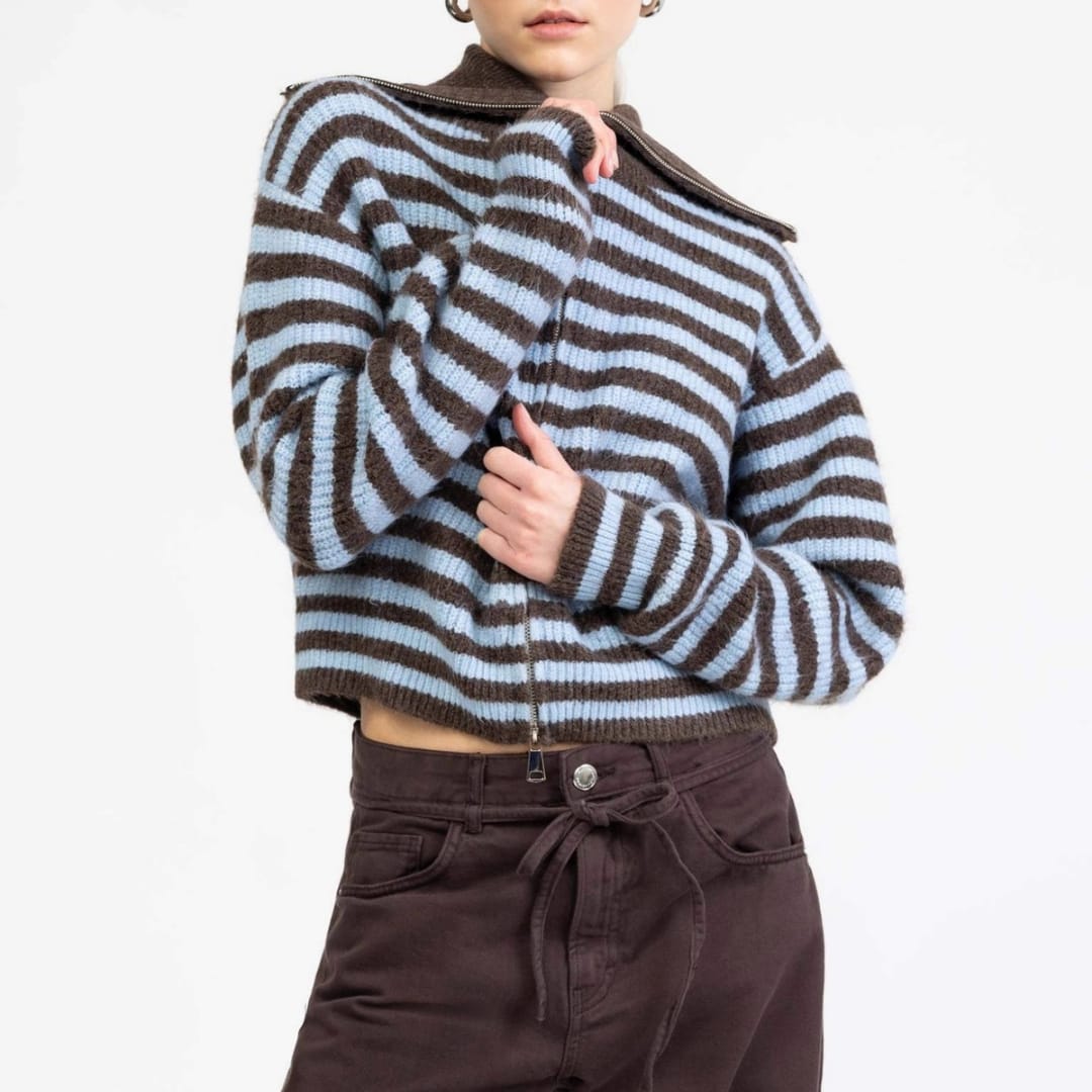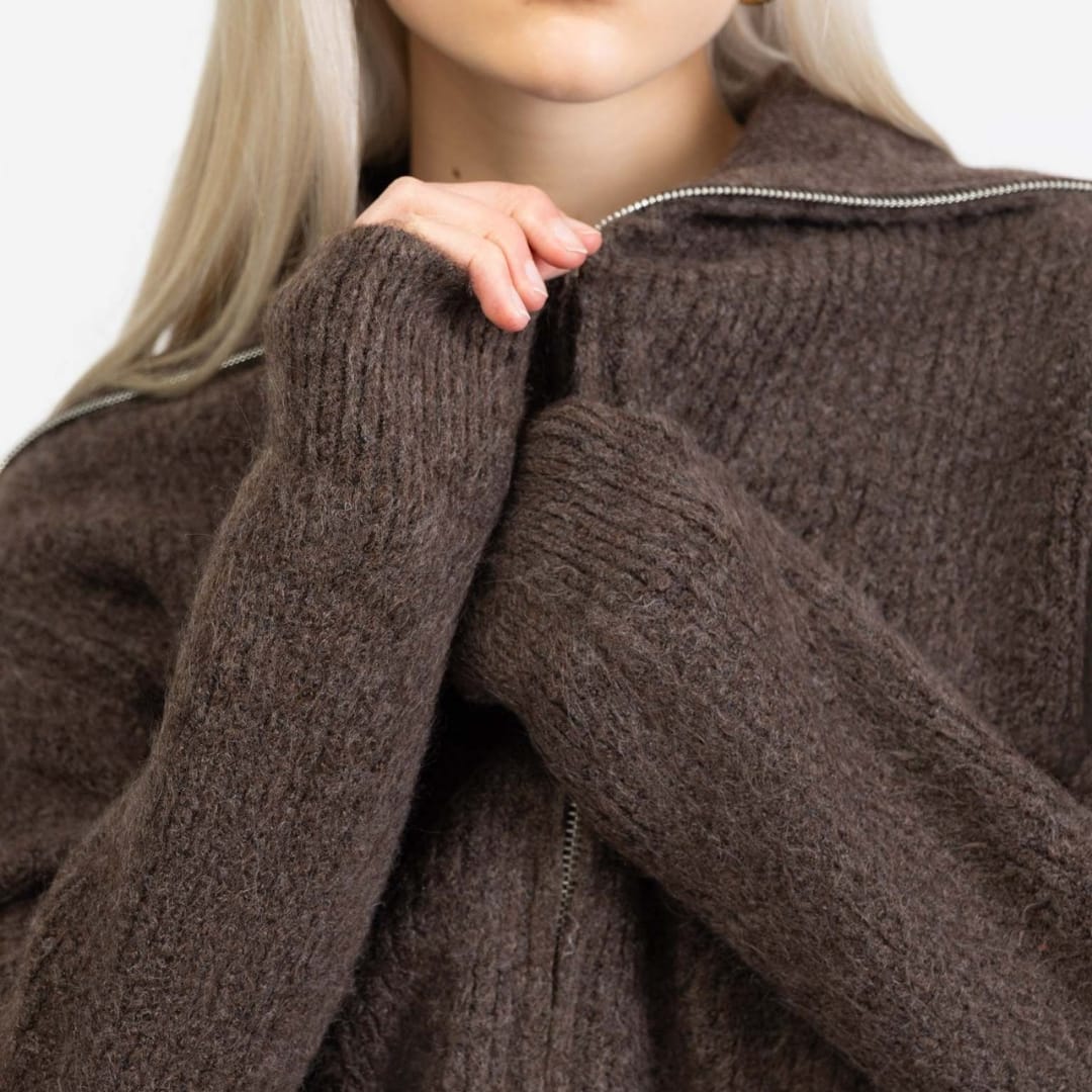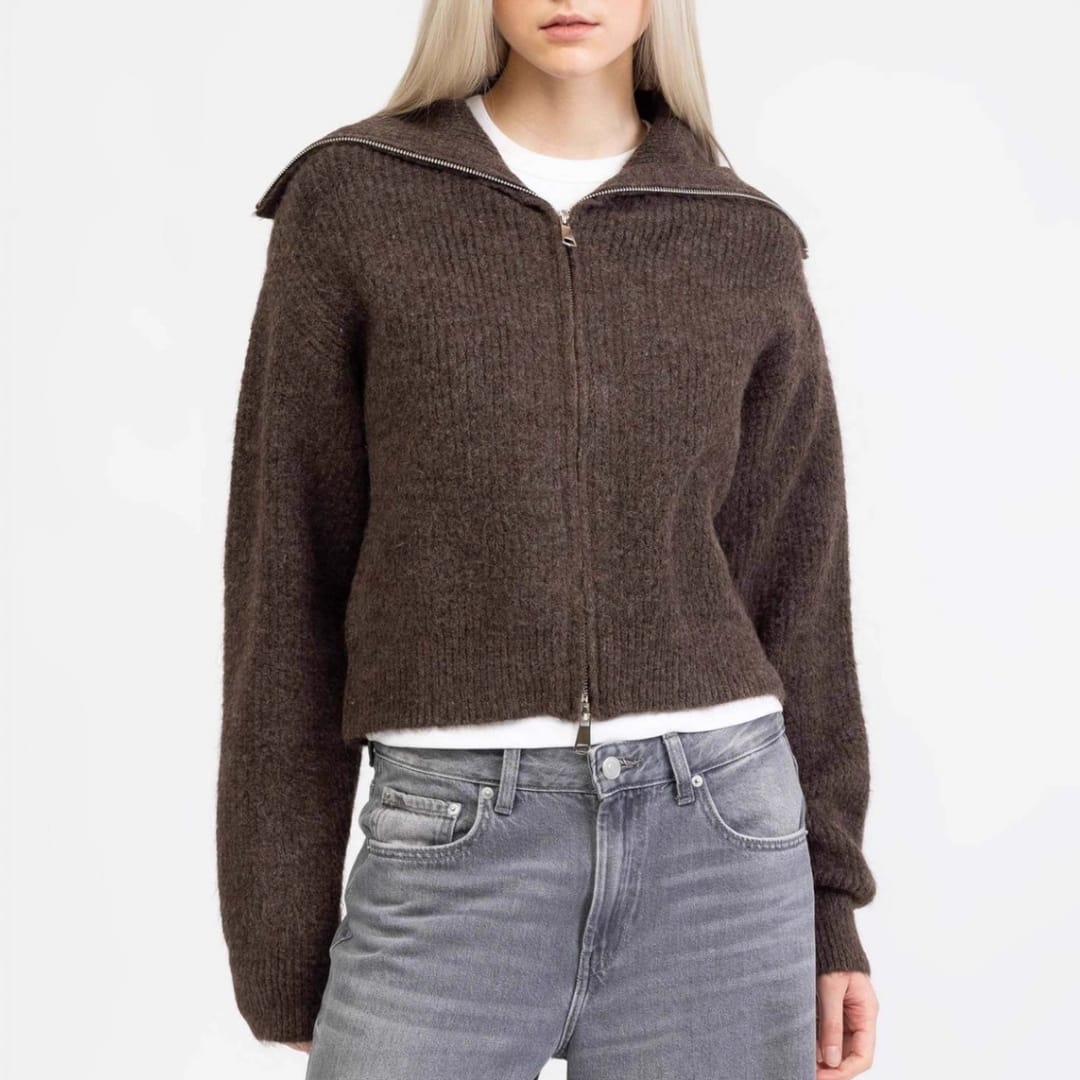 Stay warm and stylish with our Womens Autumn Winter Thick Loose Fit Zip-Up Cardigan featuring a spread collar. Perfect for layering, casual outings, or cozy seasonal wear.