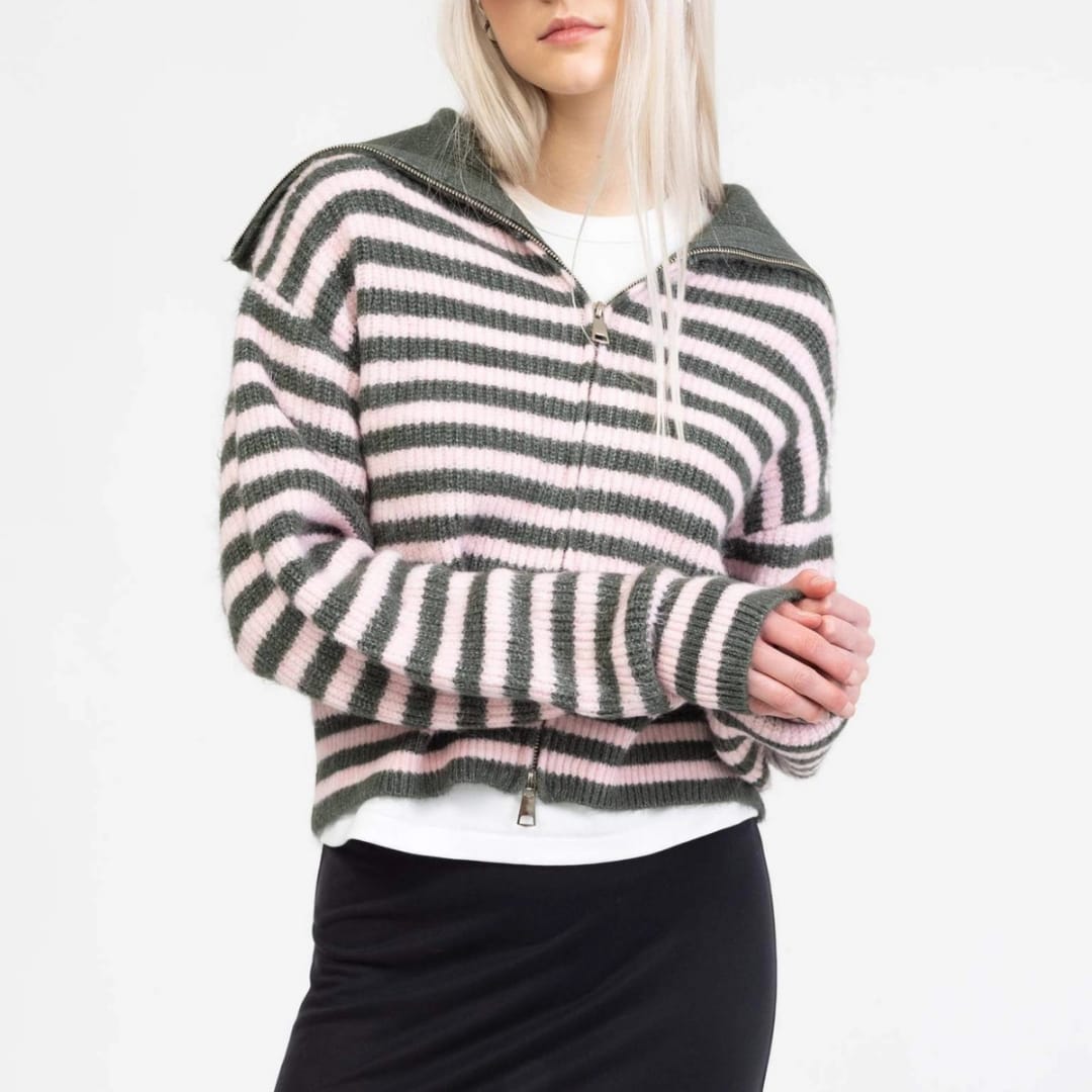 Thick Loose Fit Zip Up Cardigan With Spread Collar