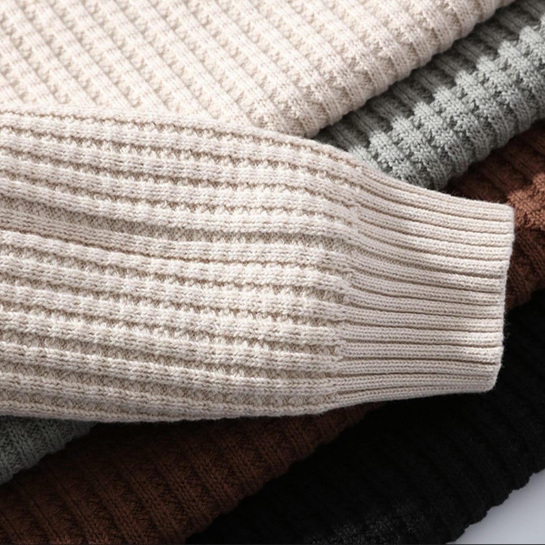 Stay stylish and warm with our Heavyweight Waffle-Knit Turtleneck Sweater built for men who value both comfort and bold winter fashion.