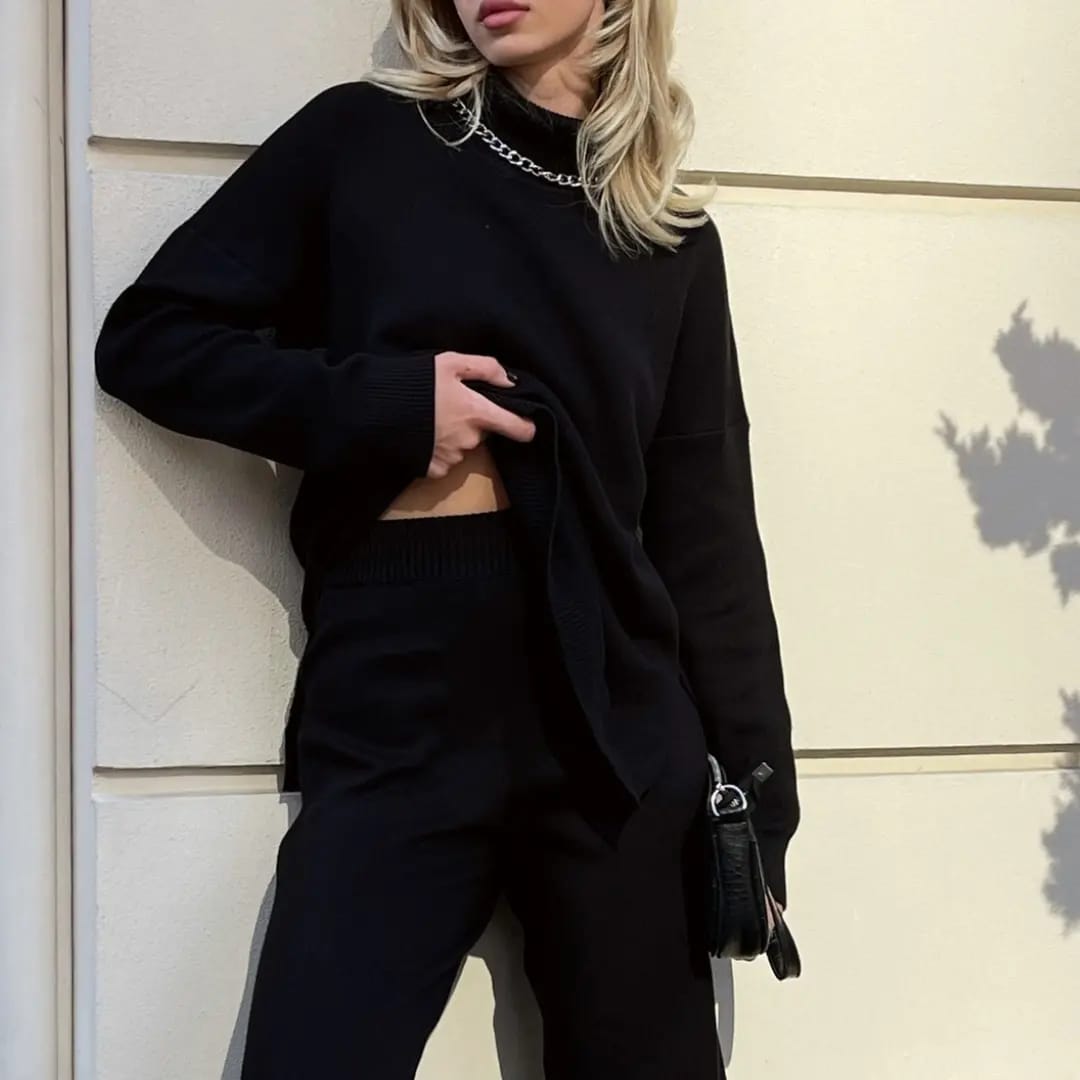 Stay warm and on-trend with this thick turtleneck sweater featuring practical side slits for added comfort and movement. Crafted from chunky knit fabric, it provides excellent insulation during cold days while maintaining a fashionable silhouette. The high turtleneck keeps you cozy, and the side slits add a subtle flair, making it easy to layer over jeans, skirts, or leggings. Perfect for casual outings or relaxed days at home, this sweater combines function with chic style effortlessly.