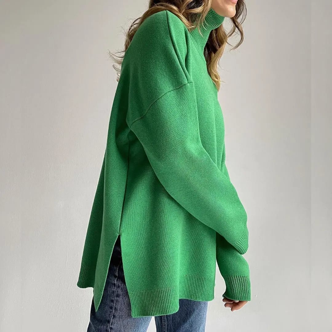 Thick Turtleneck Sweater with Side Slits