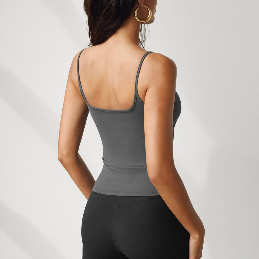 Stay cool and chic with this thin spaghetti strap fitted tank top—perfect for layering or wearing solo during warm days.