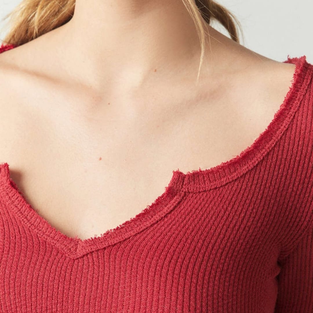 Thin V-Neck Ribbed Top