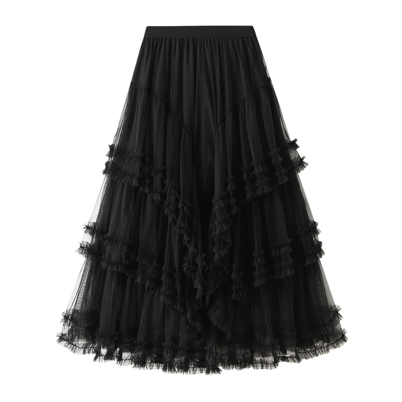 The Tulle Skirt with Waterfall Lace Ruffles 3 features elegant tulle fabric and cascading lace ruffles for a dramatic, feminine look. Perfect for formal events, this skirt offers a graceful silhouette with a touch of whimsy and sophistication.